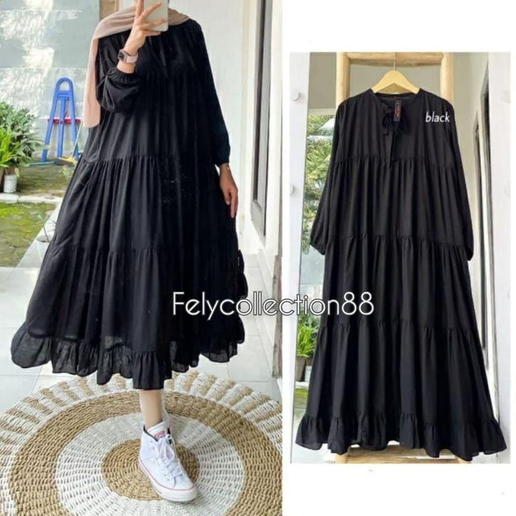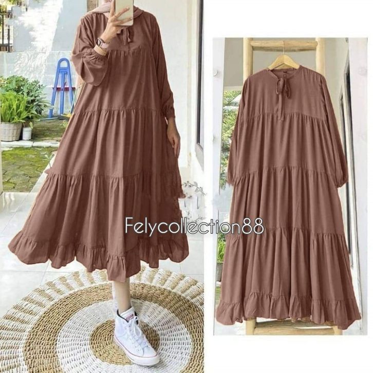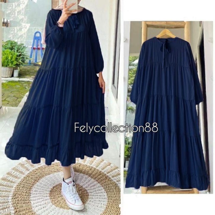 Gamis Cewek Terbaru Kekinian Rachel Midi Dress Busui Friendly Fashion Wanita Muslim Bahan Katun Micro Premium