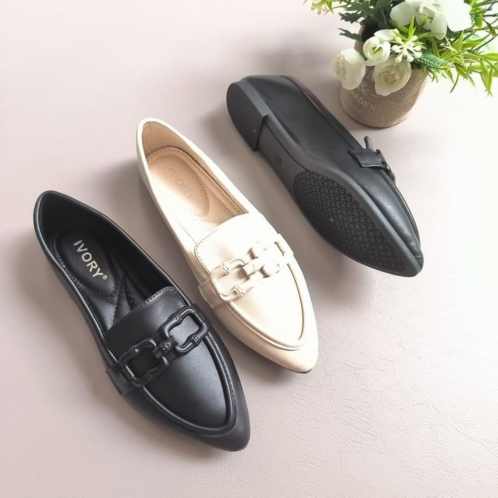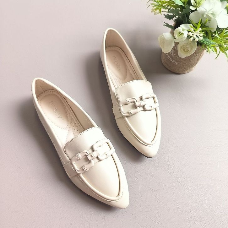 SEPATU FLAT SHOES TERBARU 2025 NEW IVORY Sepatu Wanita Flatshoes Loafer Formal Terbaru 688-ST47
