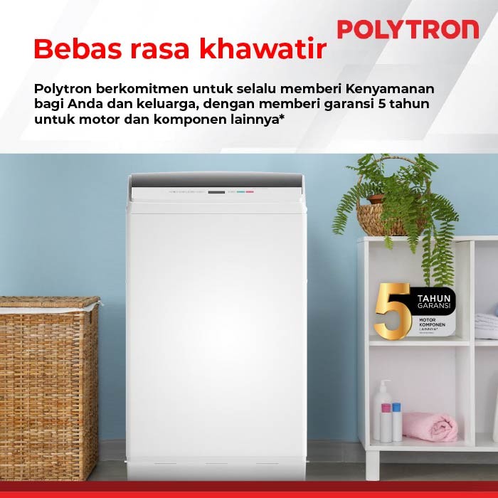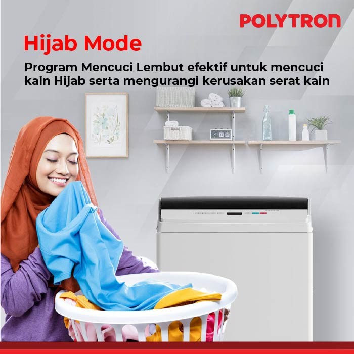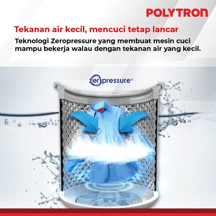 POLYTRON MESIN CUCI 1 TABUNG ZEROMATIC SERIES HIJAB 7.5 KG PAW 7527 - MERAH