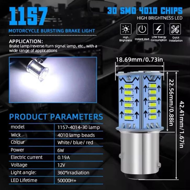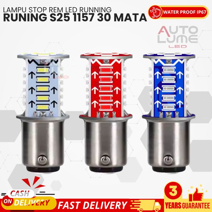 Lampu LED Rem S25 1157 30 SMD – Strobe & Running Light – Universal untuk Mobil/Motor – Super Terang 6000K – CANBUS