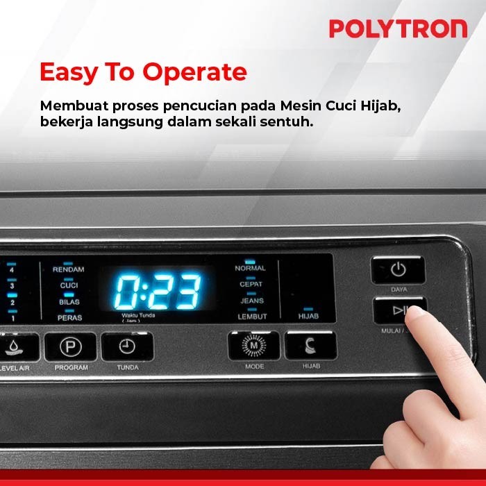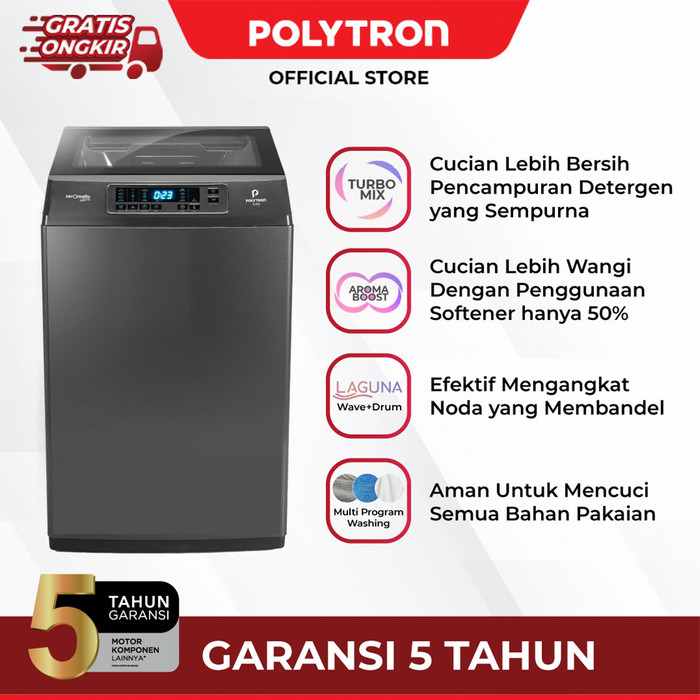 POLYTRON MESIN CUCI 1 TABUNG ZEROMATIC LAGUNA HIJAB 8 KG PAW 8028 - ABU-ABU
