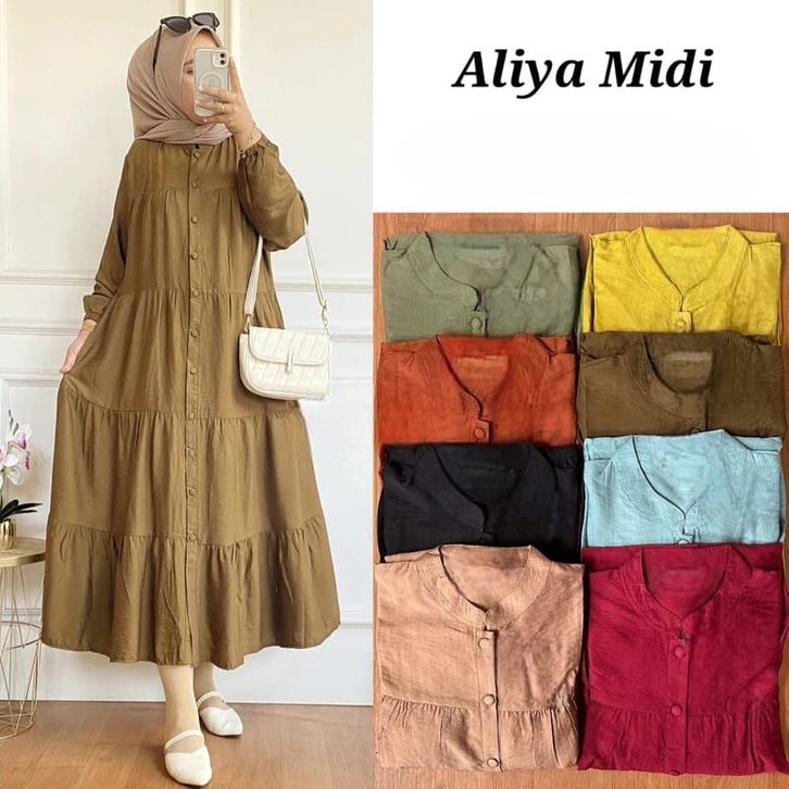Gamis Cewek Aliya Midi Dress Midi Dress Wanita Busui Friendly Bahan Katun Rayon Premium Fashion Wanita Muslim