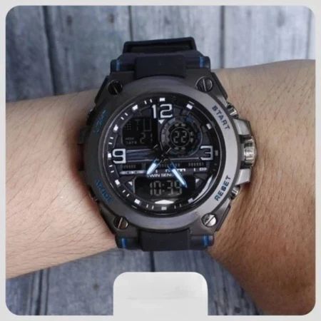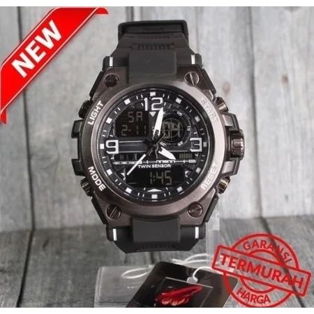 JAM TANGAN PRIA SPORTY ANTI AIR GST RUBBER G 8600 DUALTIME METAL KARET LAMPU ALARM WATER RESIST