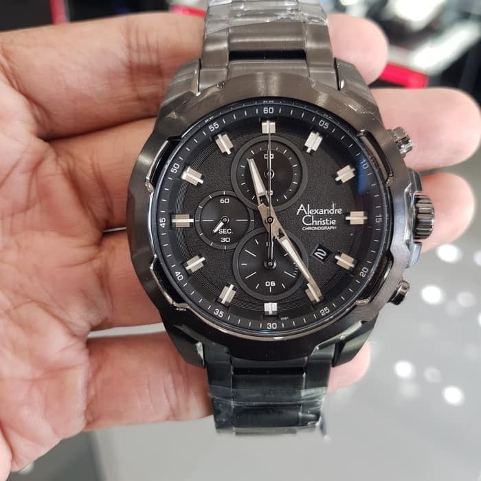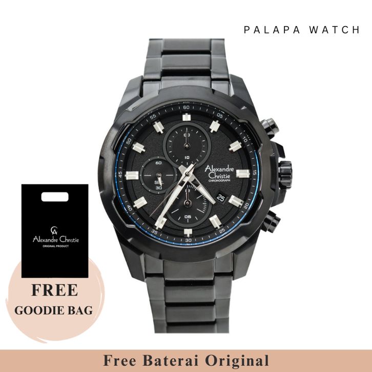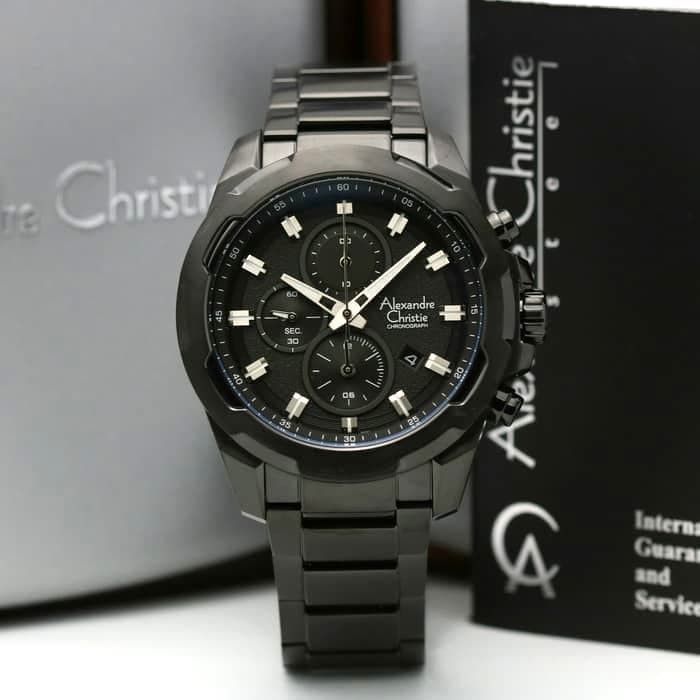 Jam Tangan Pria Alexandre Christie AC 6523 Full Black Chrono Original
