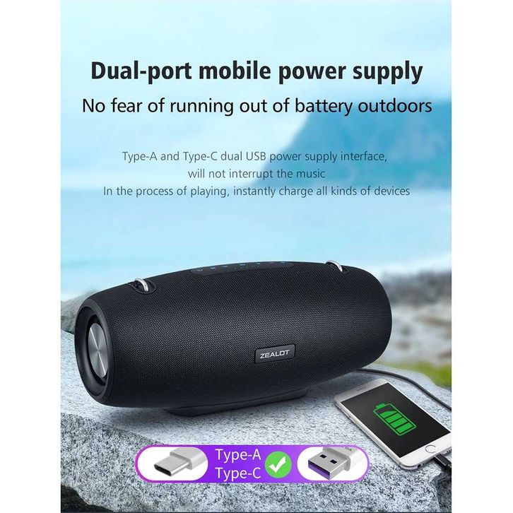 ZEALOT Speaker Bluetooth Portable Stereo Outdoor Waterproof 60W - S-67