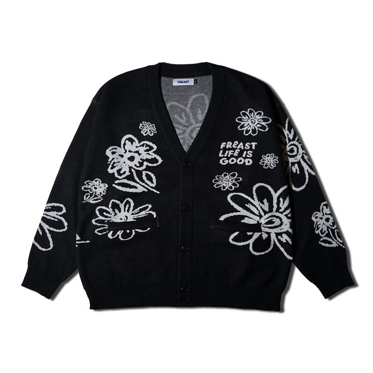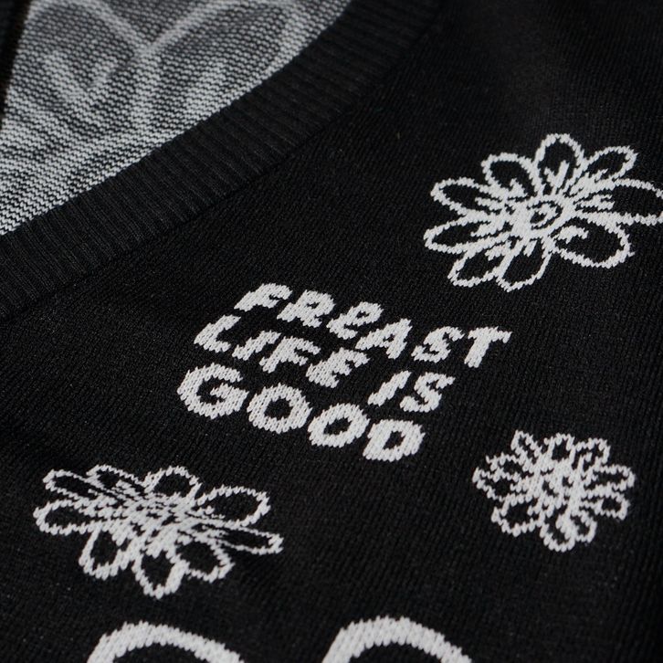 Kardingan Knit Freast Life Is Good Black Cardigan Rajut Pria Cardigan Oversize Original Distro Kekinian