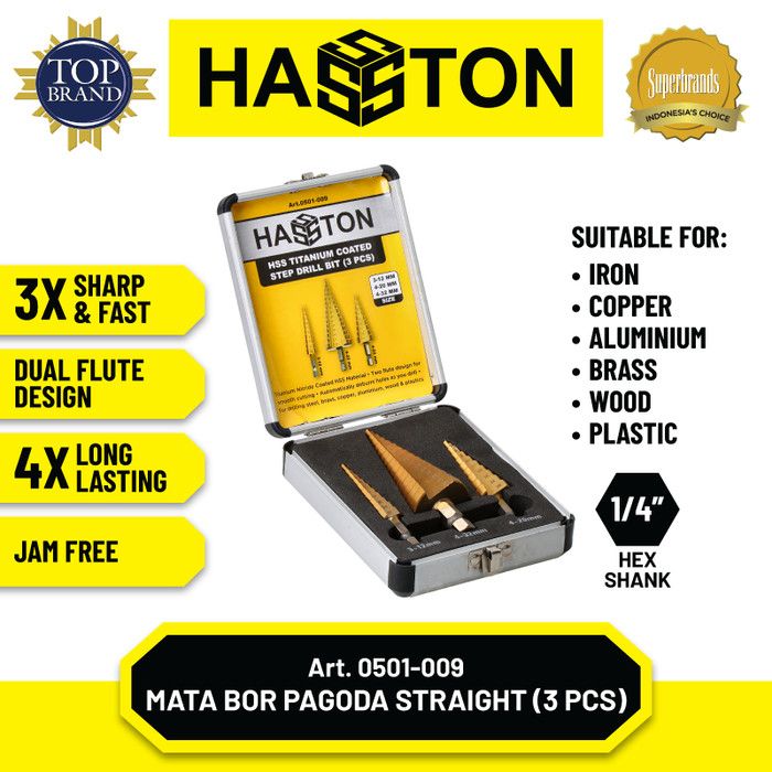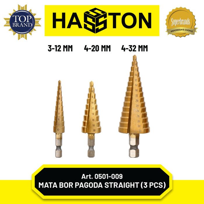 Hasston Mata Bor Pagoda Multi Set 3Pcs / HSS Titanium Coated(0501-009)