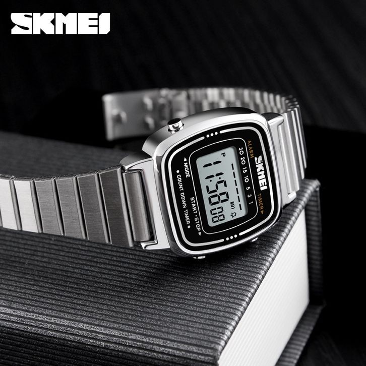 Jam Tangan Wanita SKMEI 1901 (with ALARM) Women LED Digital Stainless Steel Jam Tangan Digital Original
