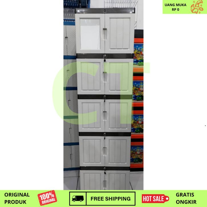 LEMARI PLASTIK LEMARI PAKAIAN SUSUN 5 ROTAN FULL KACA + KUNCI Tanpa Dp