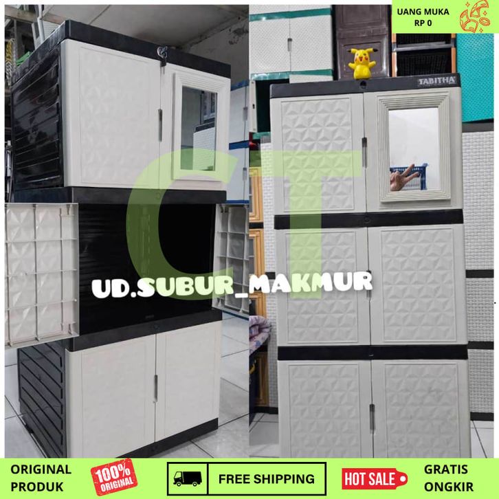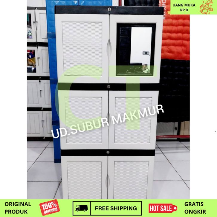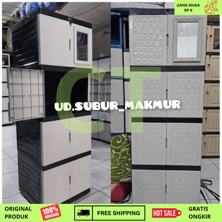 Lemari Plastik Lemari Pakaian Plastik Susun KACA ada KUNCI Tanpa Dp