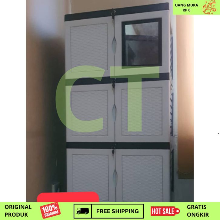 Lemari Plastik Lemari Pakaian Plastik Susun KACA ada KUNCI Tanpa Dp