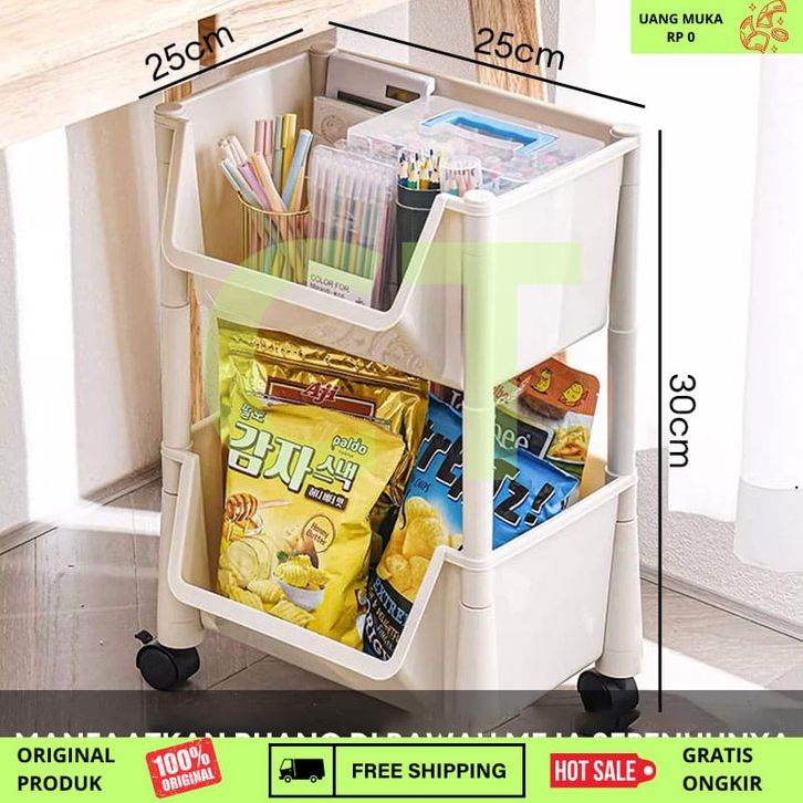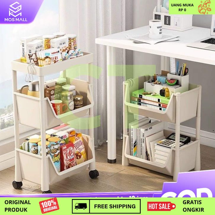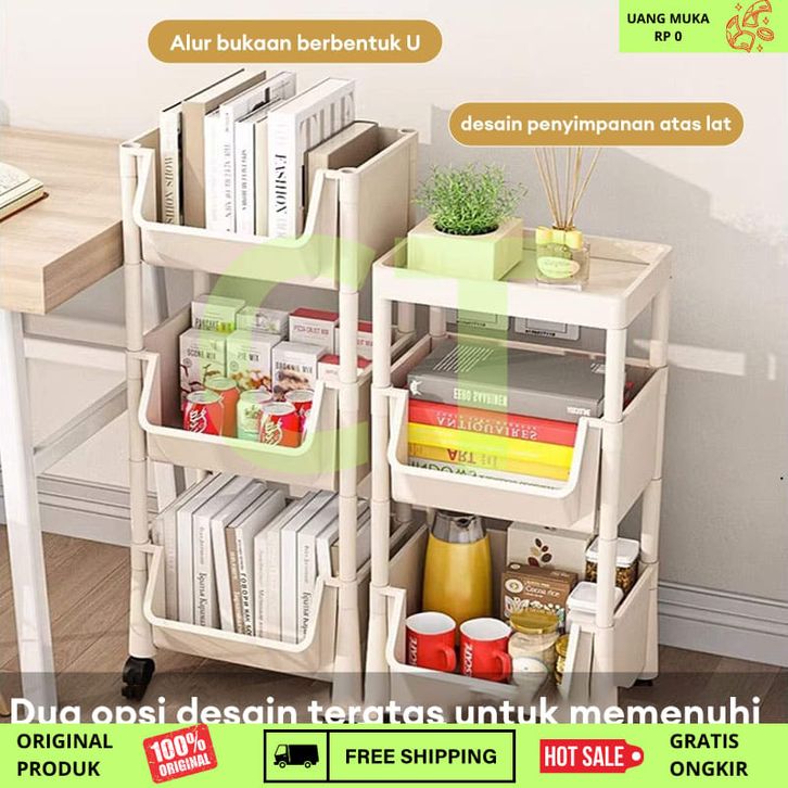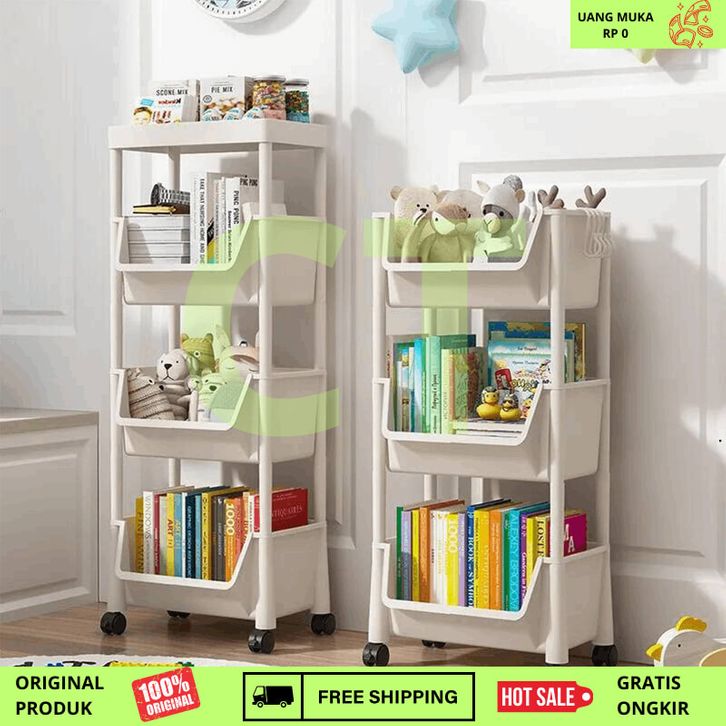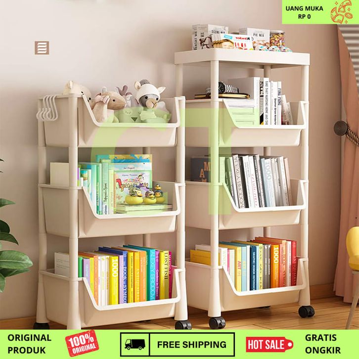 MOS MALL Rak Buku Rak susun Rak Buku portable Lemari Buku Plastik Rak Portable Roda Rak Mainan Rak Roda Toy Storage Rak