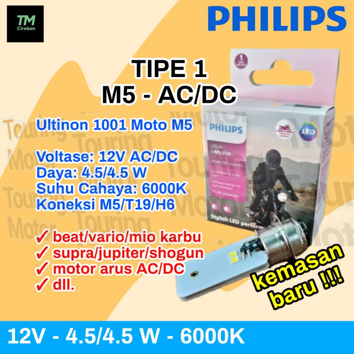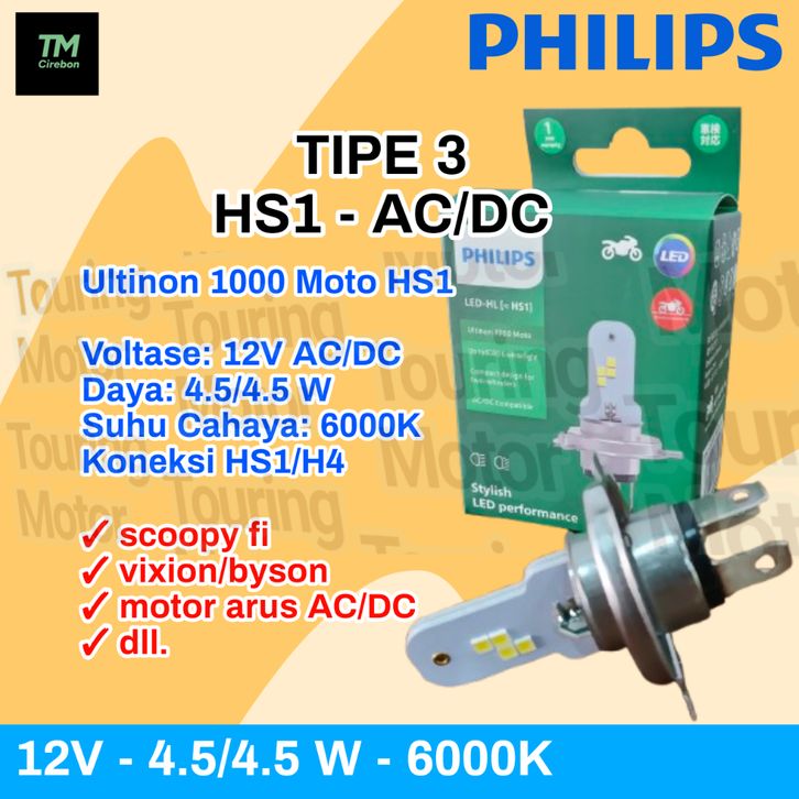 Lampu Depan LED Motor PHILIPS Ultinon | M5 H6 T19 HS1 H4 | PUTIH 6000K ALL VARIANT