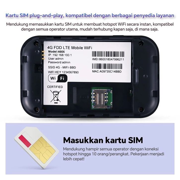 Router Nirkabel WiFi 4G / 5G LTE Mini Modem 150Mbps Mobile Broadband WiFi 2100mAh Umur Sangat Panjang 10-20m Jangkauan