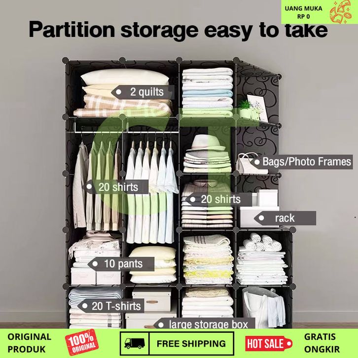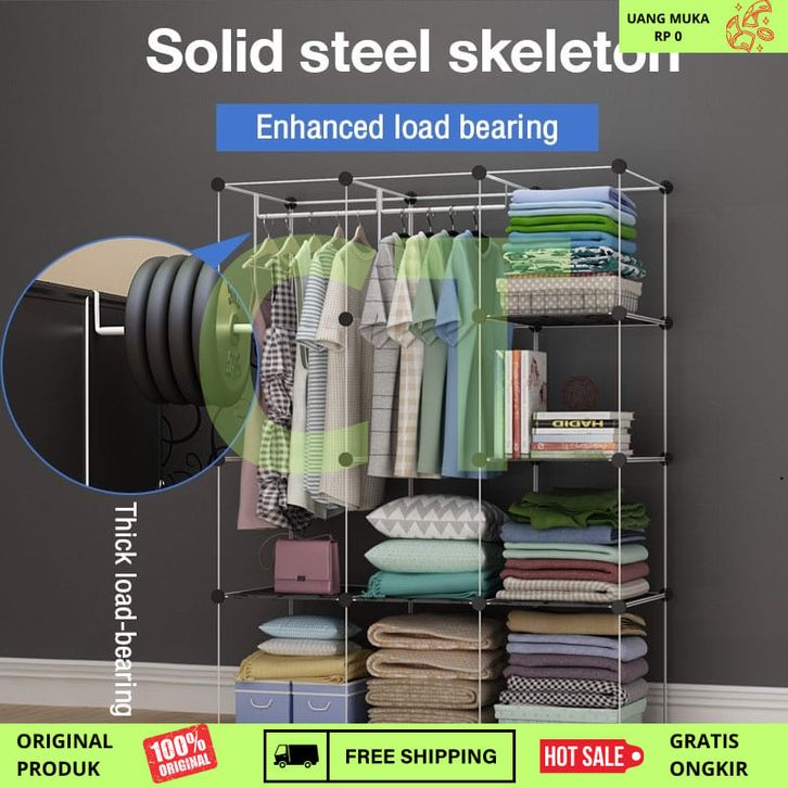 【Jaminan Kualitas】HOHome Plastik Lemari Pakaian Anti Debu Baju/Loker Pakaian Diy/Lemari Pakaian Dewasa Dan Anak/Lemari