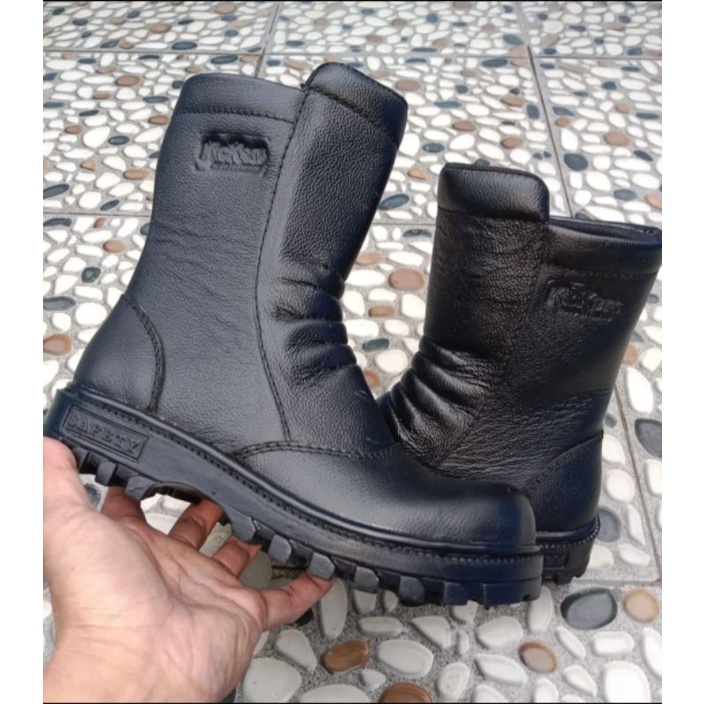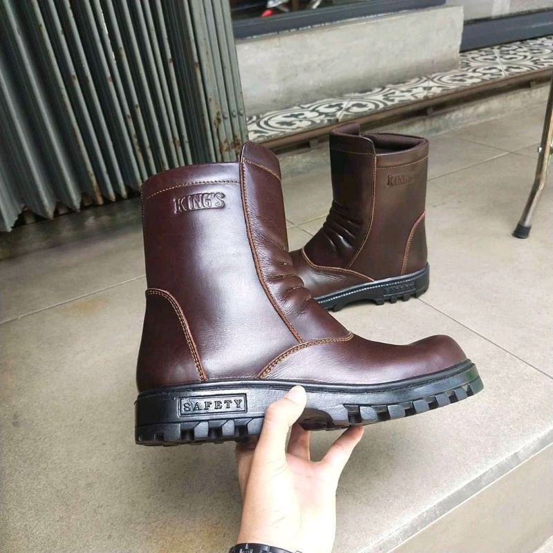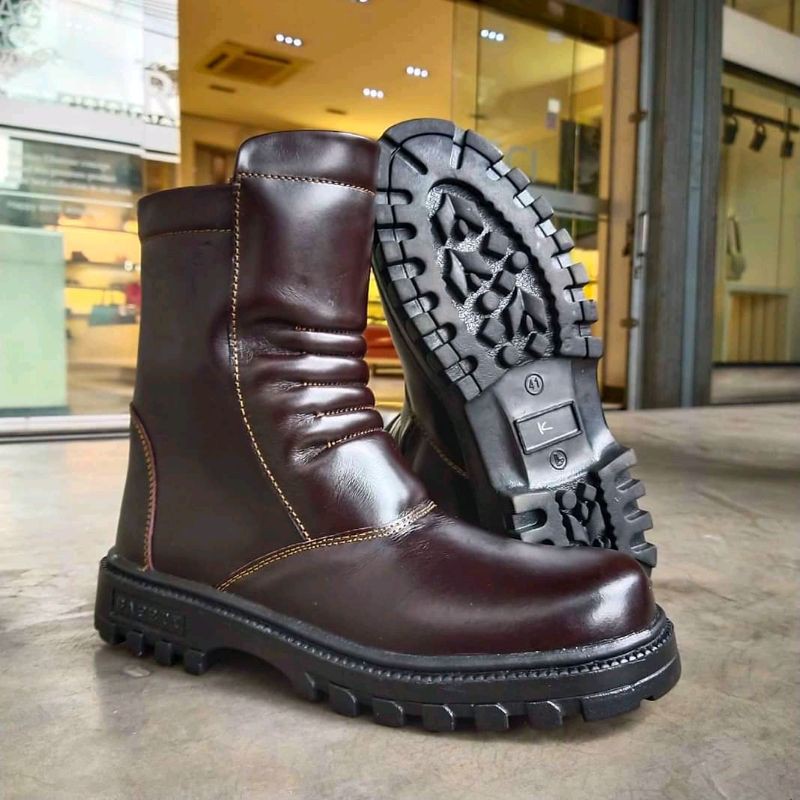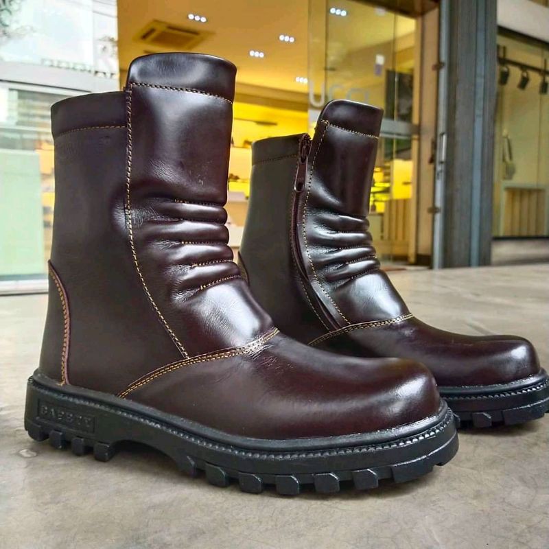 Sepatu Safety Booth Kulit Asli Resleting Original l Sepatu Safety Kulit Ujung Besi