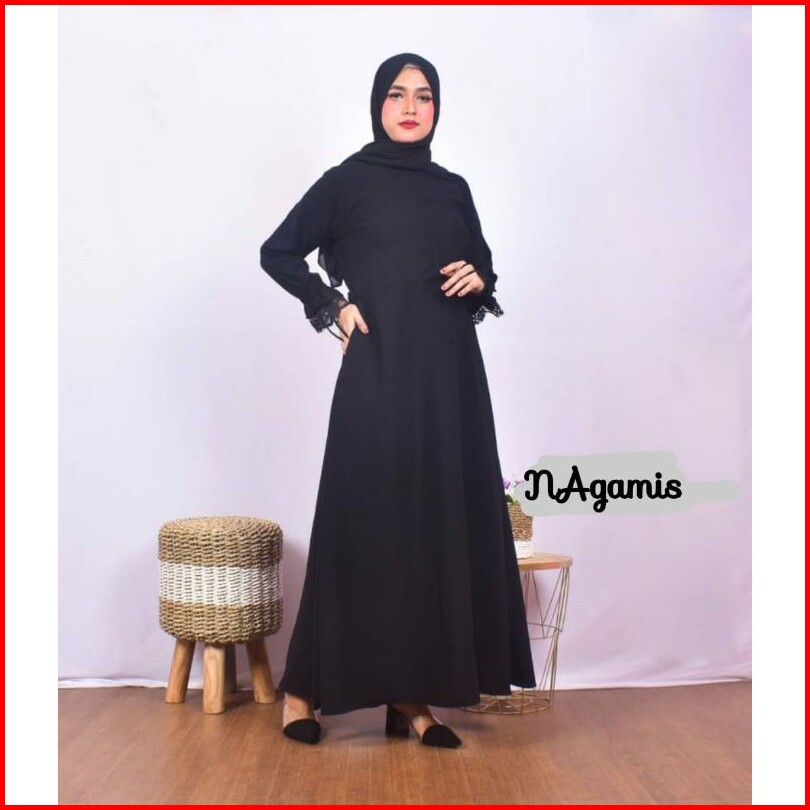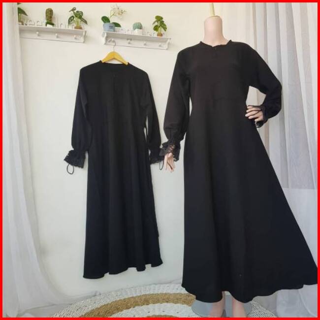 Gamis Jetblack Premium Tangan Renda Jetblack Leuwitex