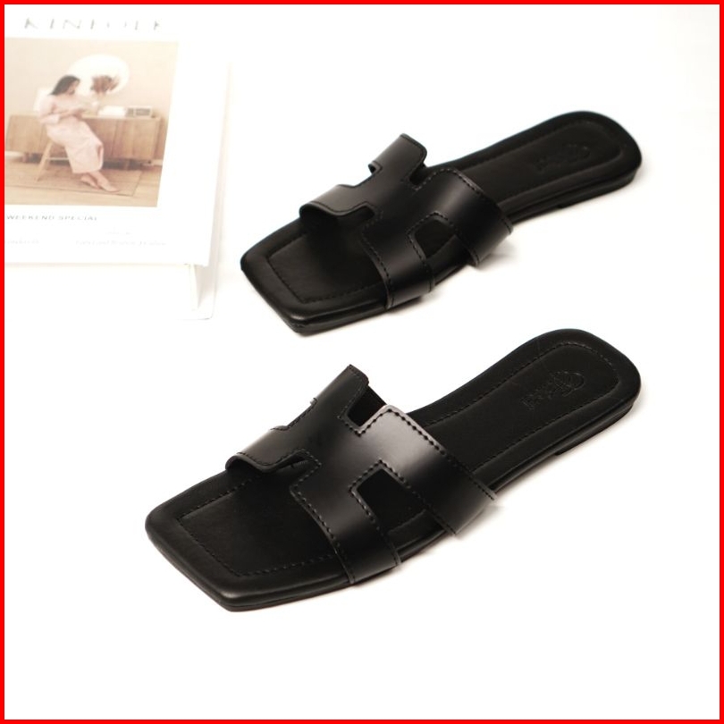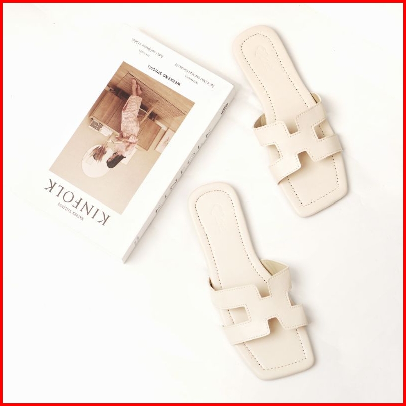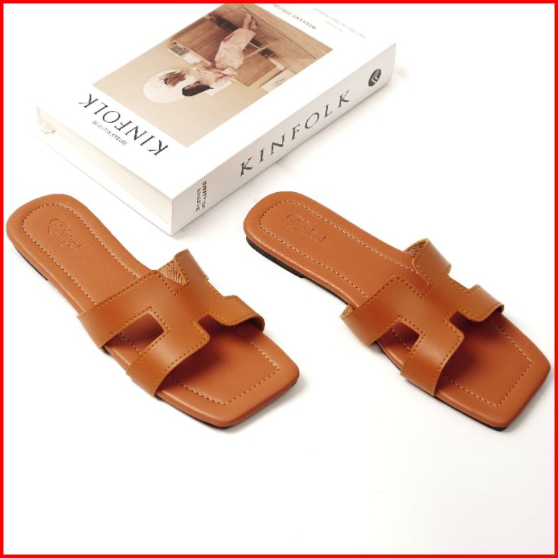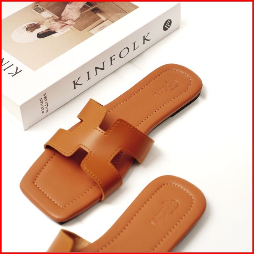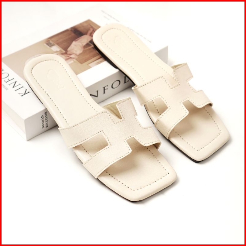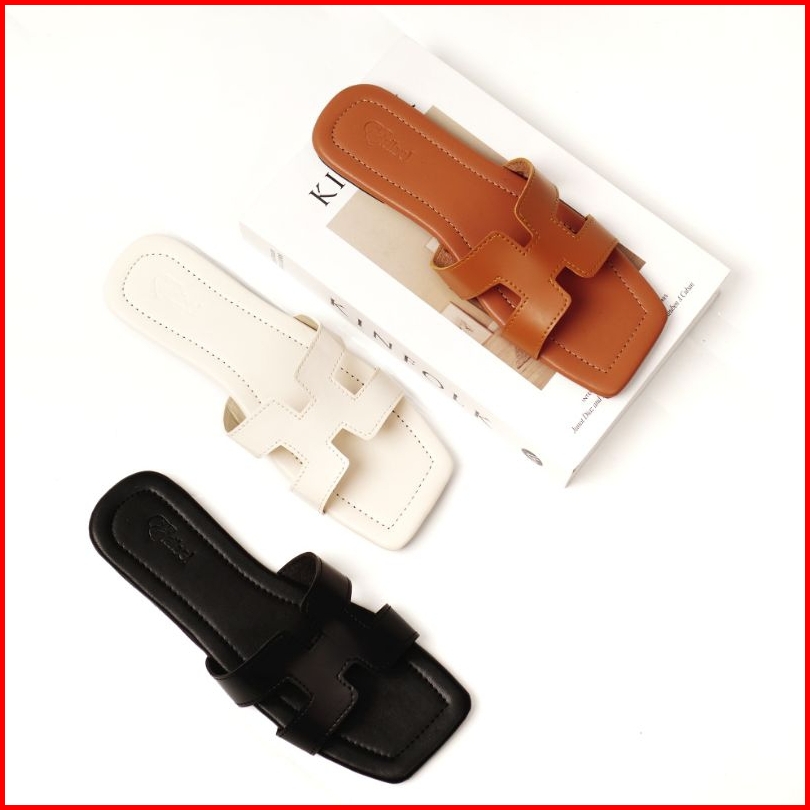 E Label - Hanna Sandal Flat Wanita Selop Sendal Teplek Casual Hak Datar Sandal Kekinian