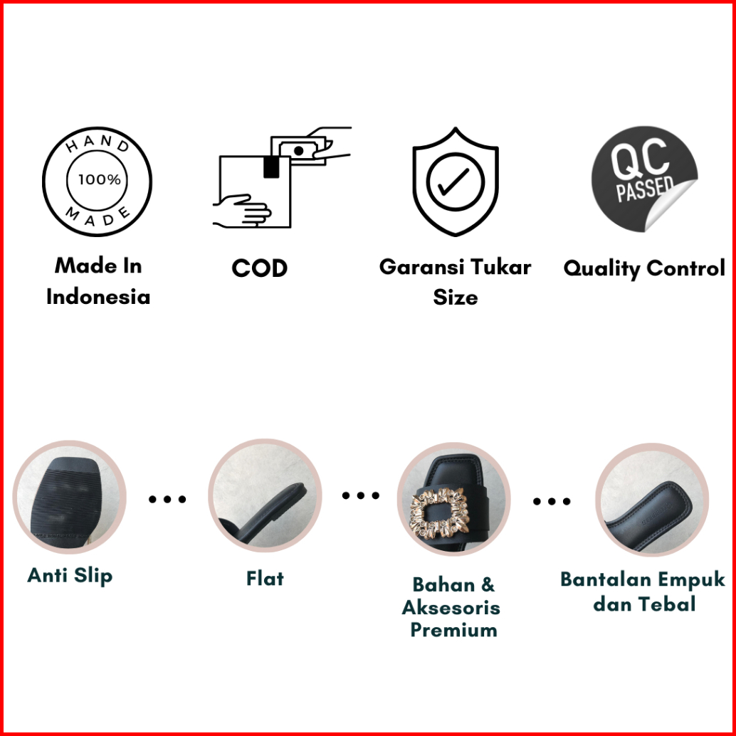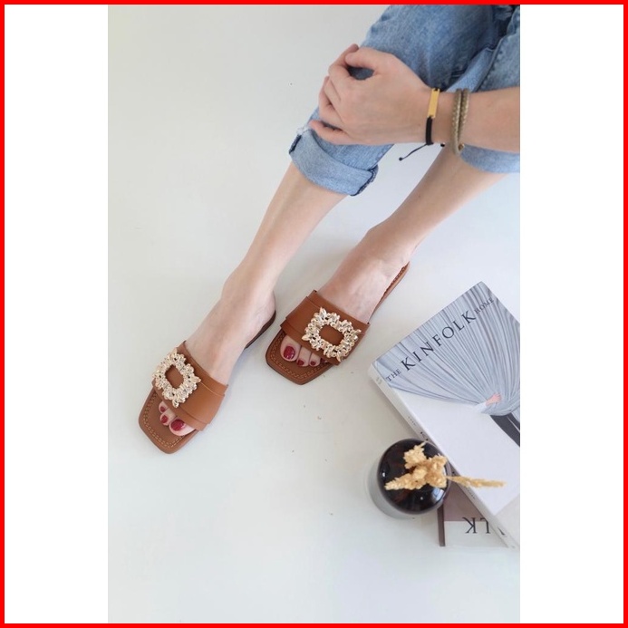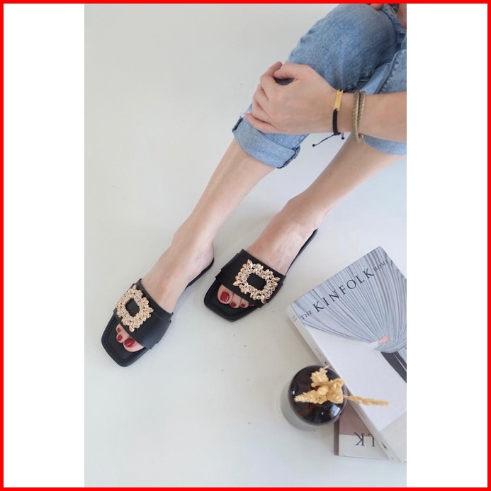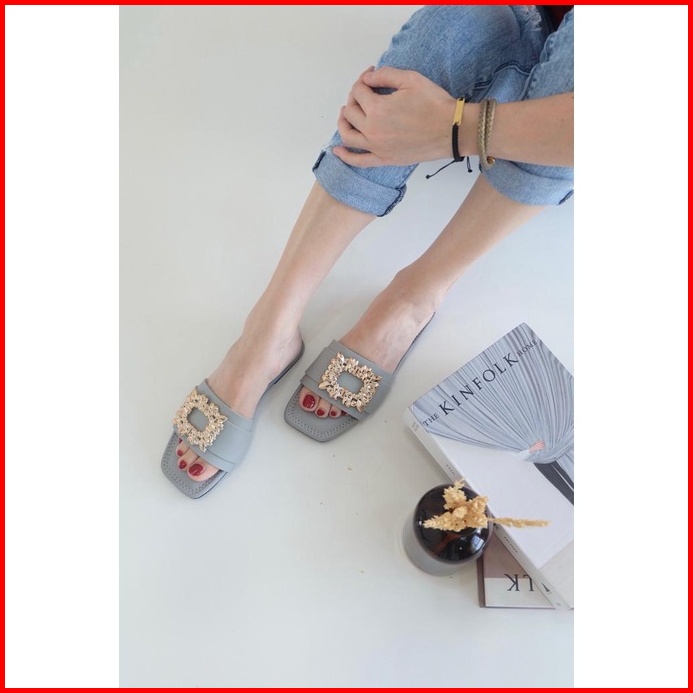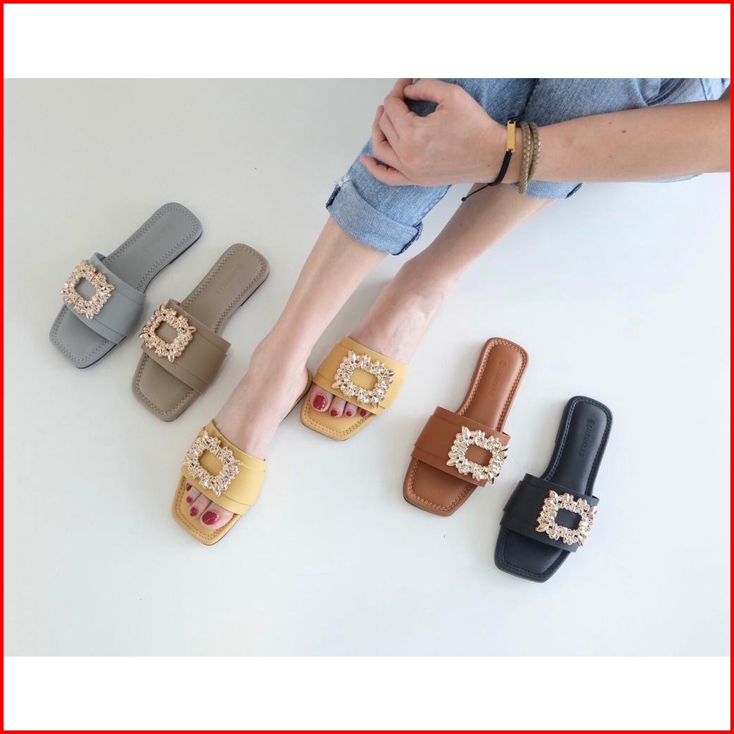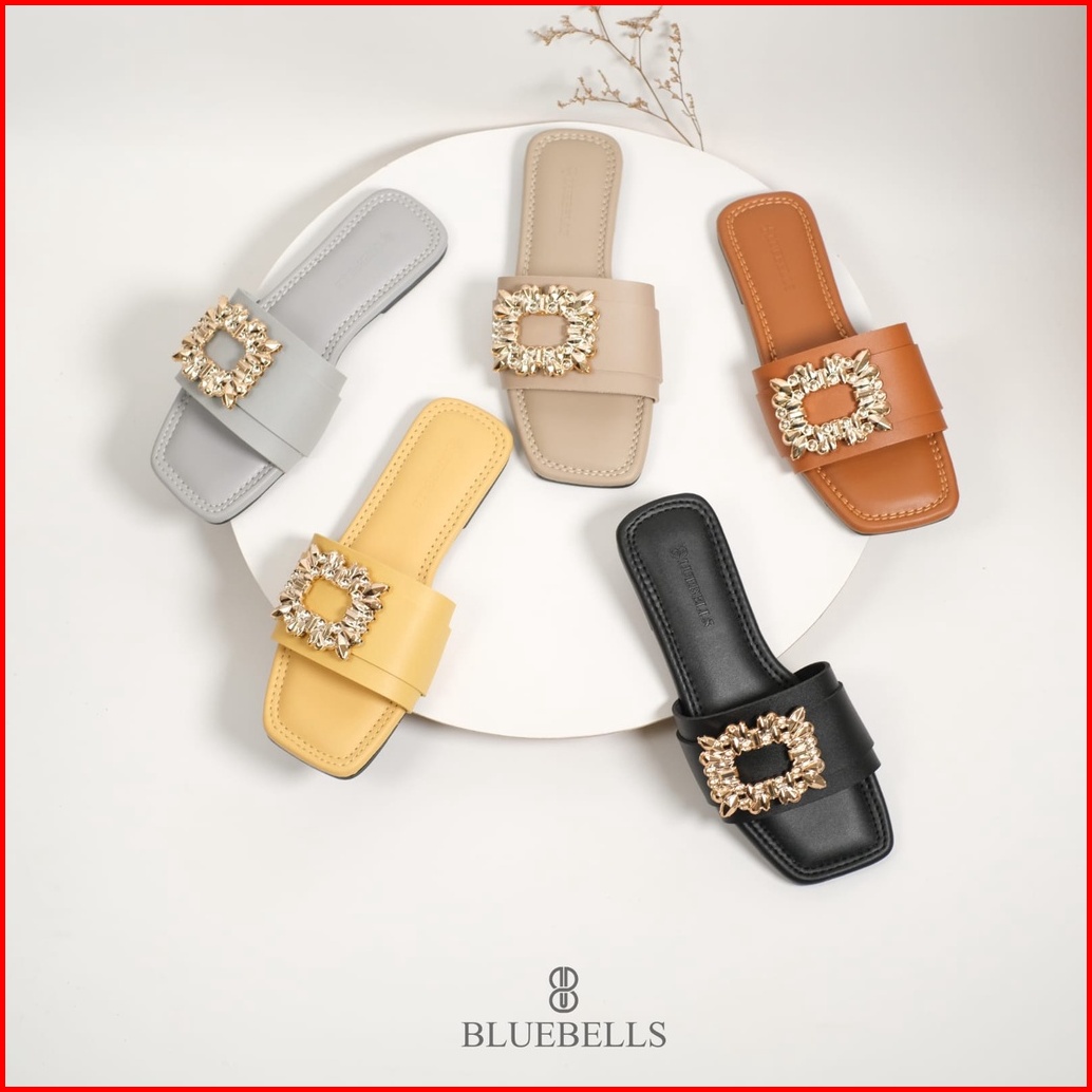 Bluebells Mawar Sendal Flat Wanita Aksesoris Mewah Elegan Tersedia Size 36-44