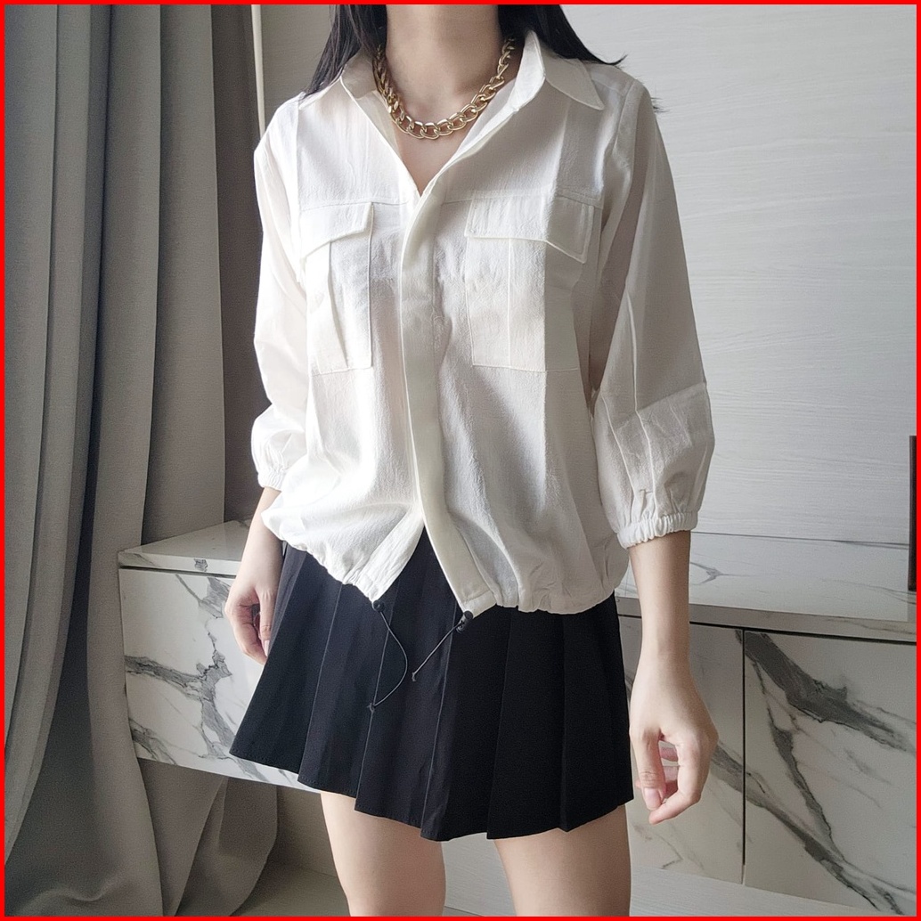 Sylvia Basic Button Shirt Atasan Blouse Kemeja Wanita Kancing Motif Polos Lengan Panjang S M L Xl