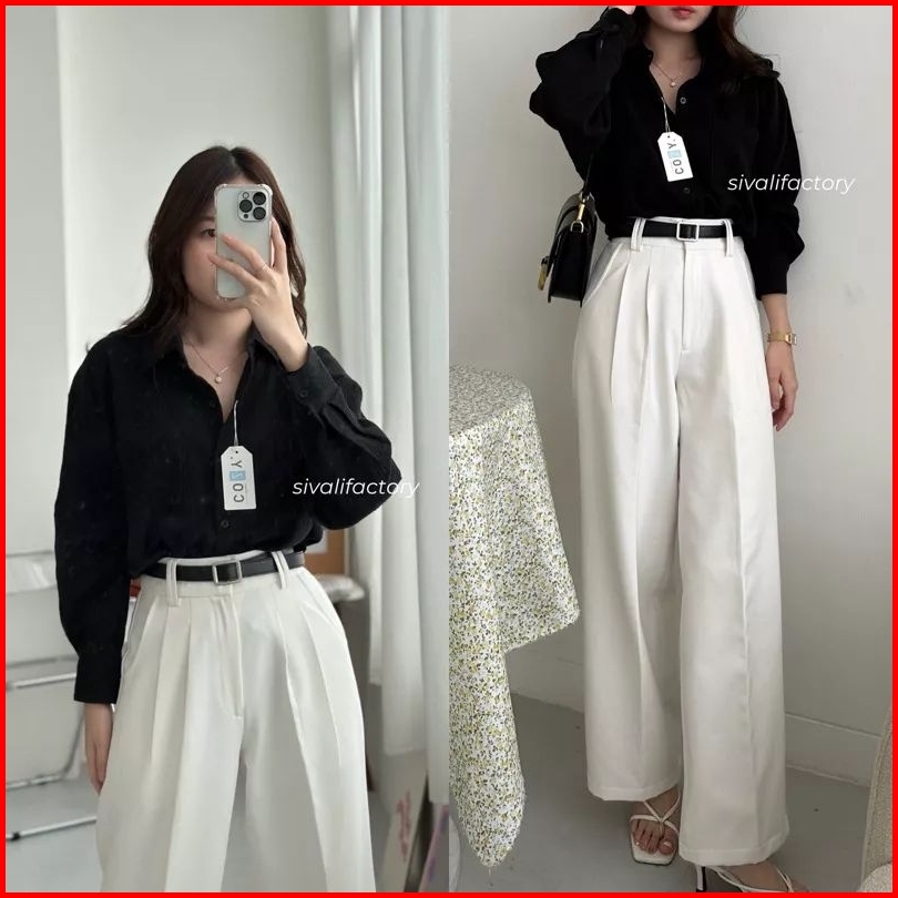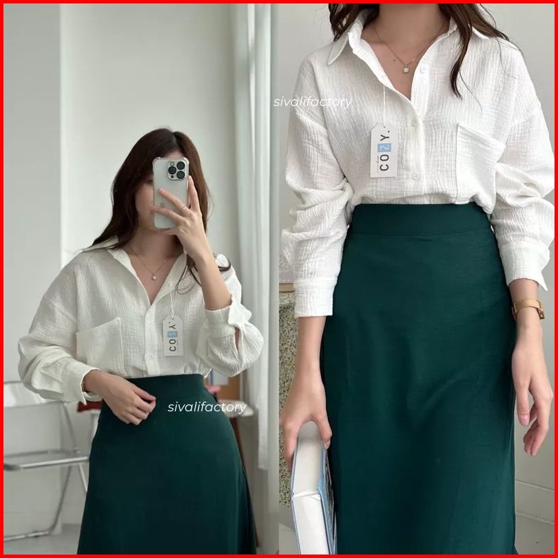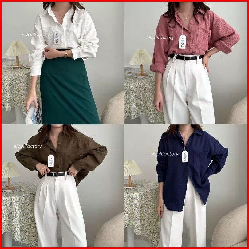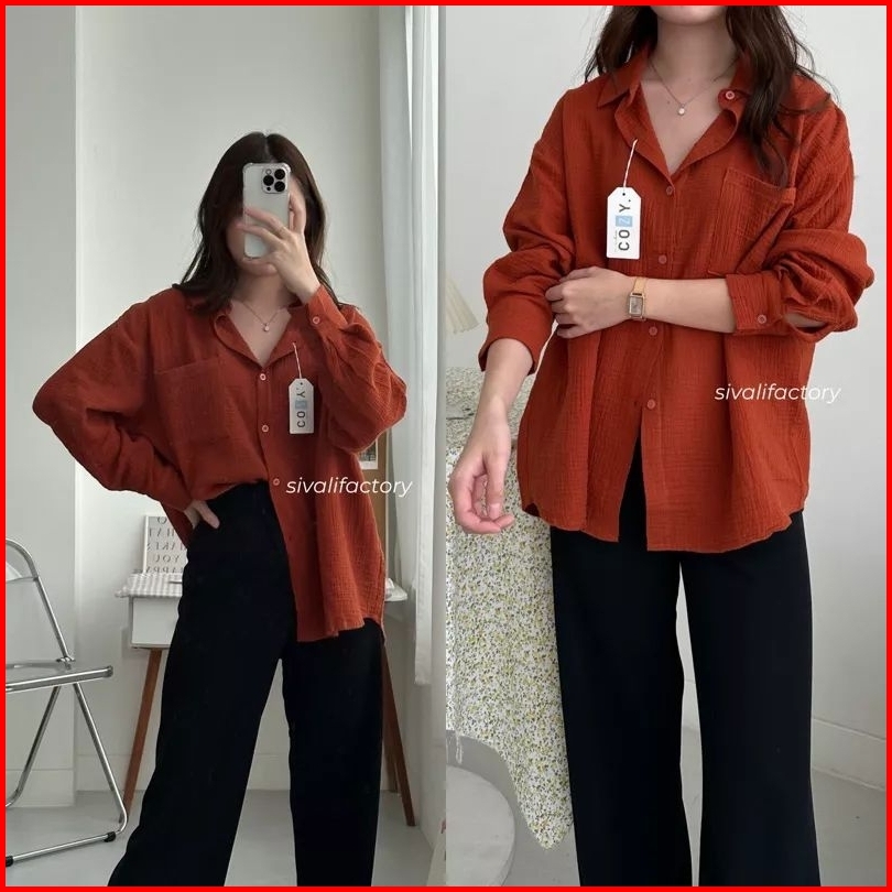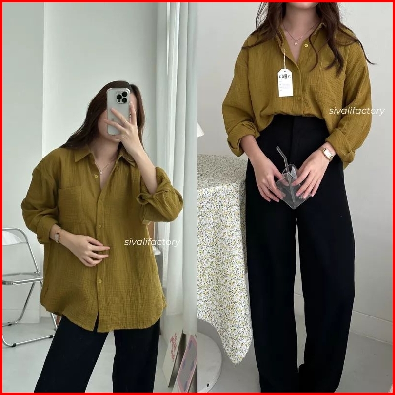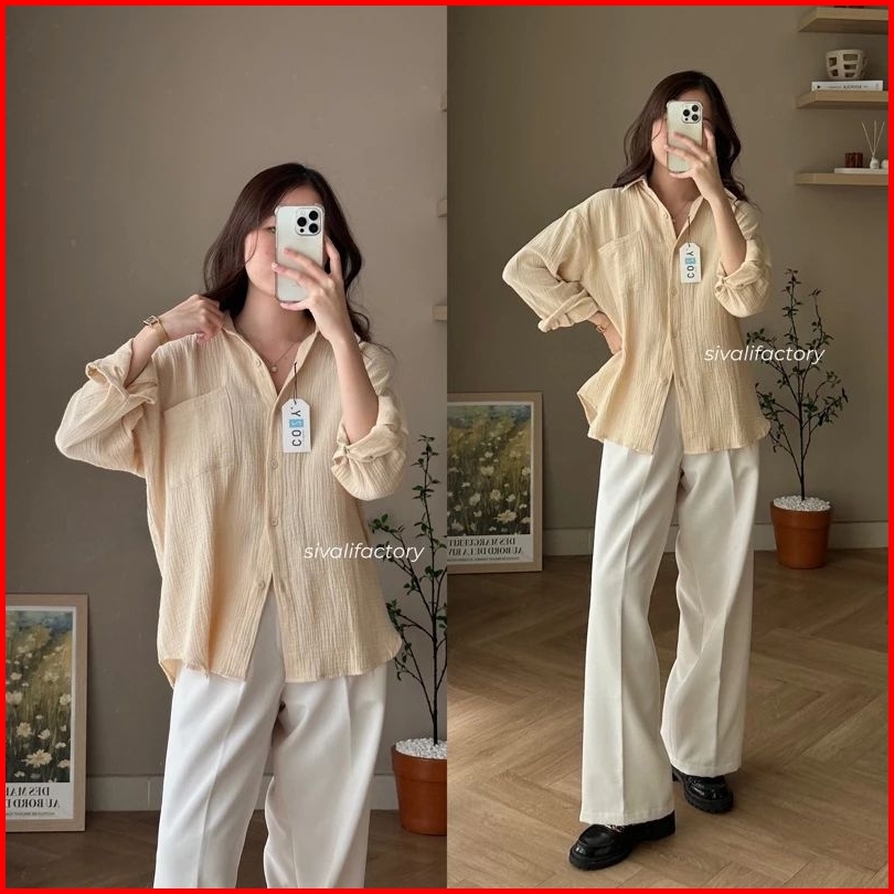 Kyra Top Kemeja Wanita Oversize - Basic Shirt Kemeja Polos Atasan Kerja Lengan Panjang