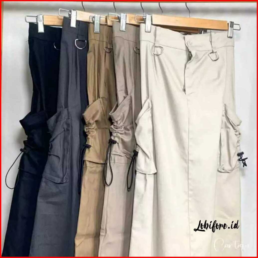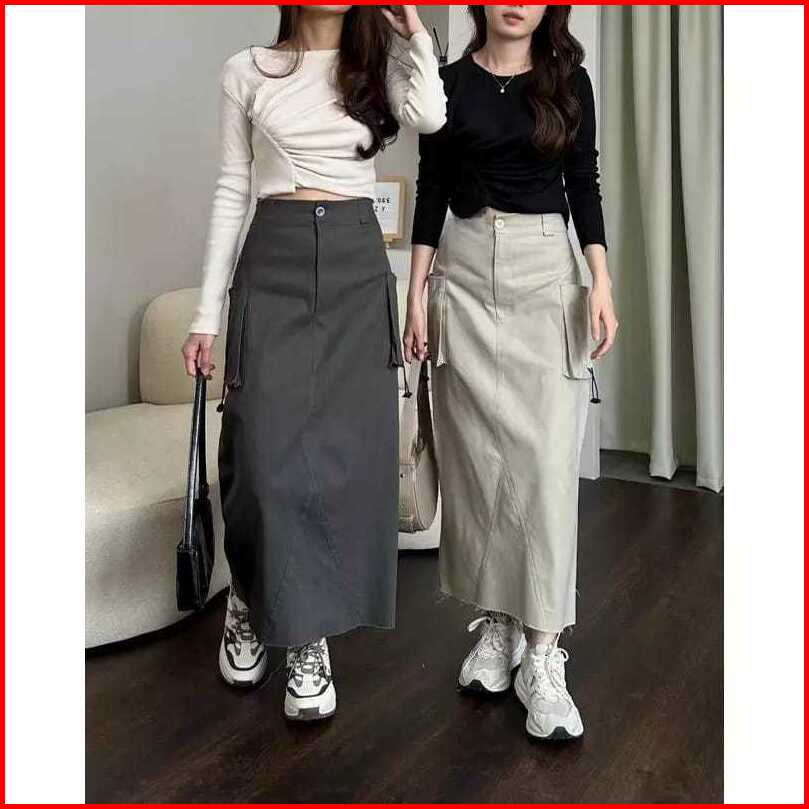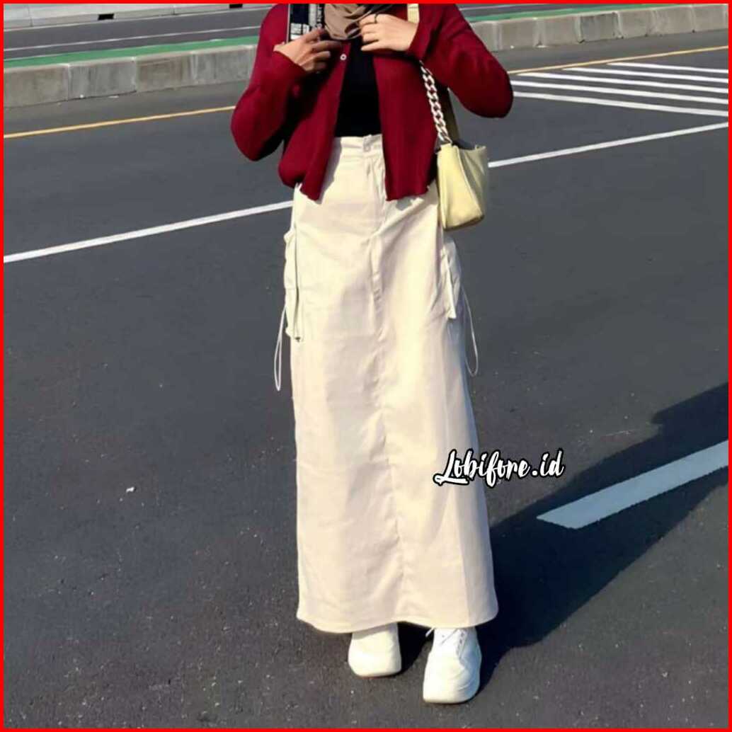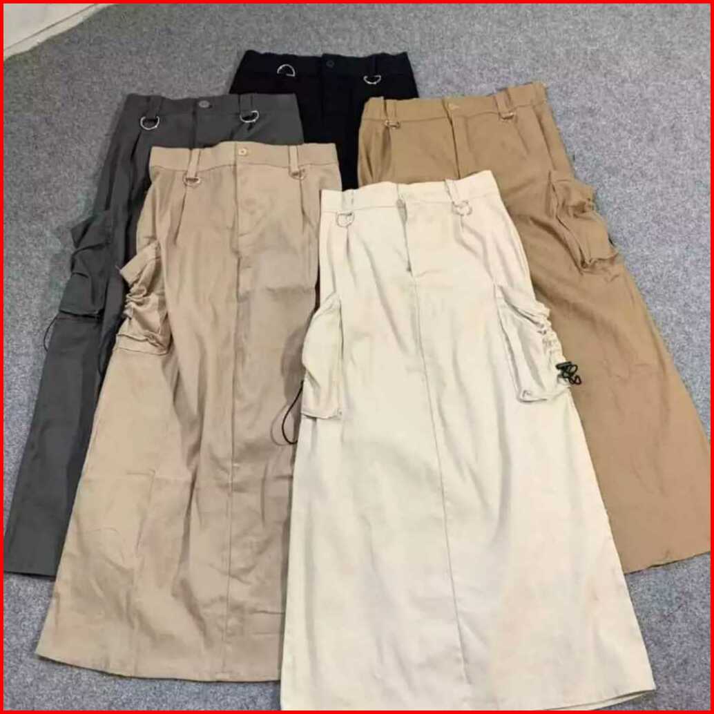 Rok Cargo Wanita Kantong Serut Bahan Katun Twill Korean Style Kekinian Terbaru