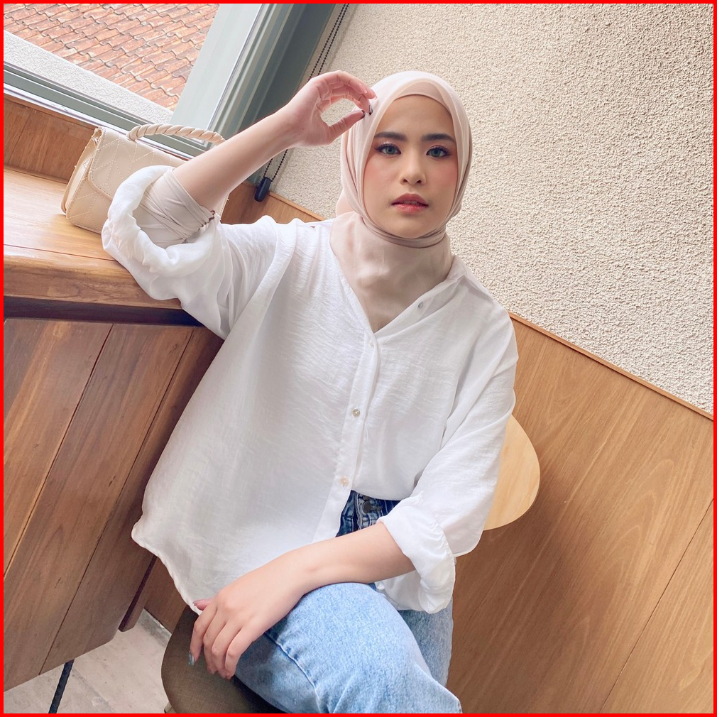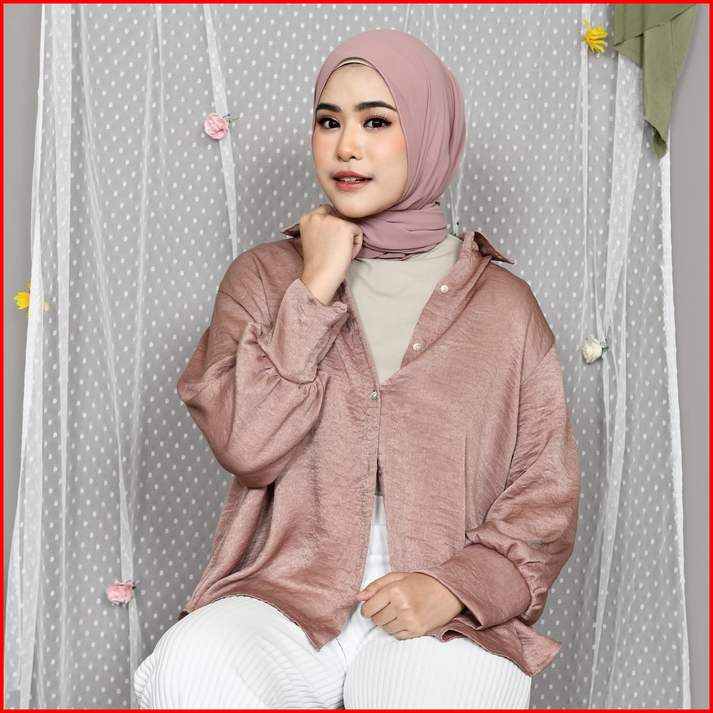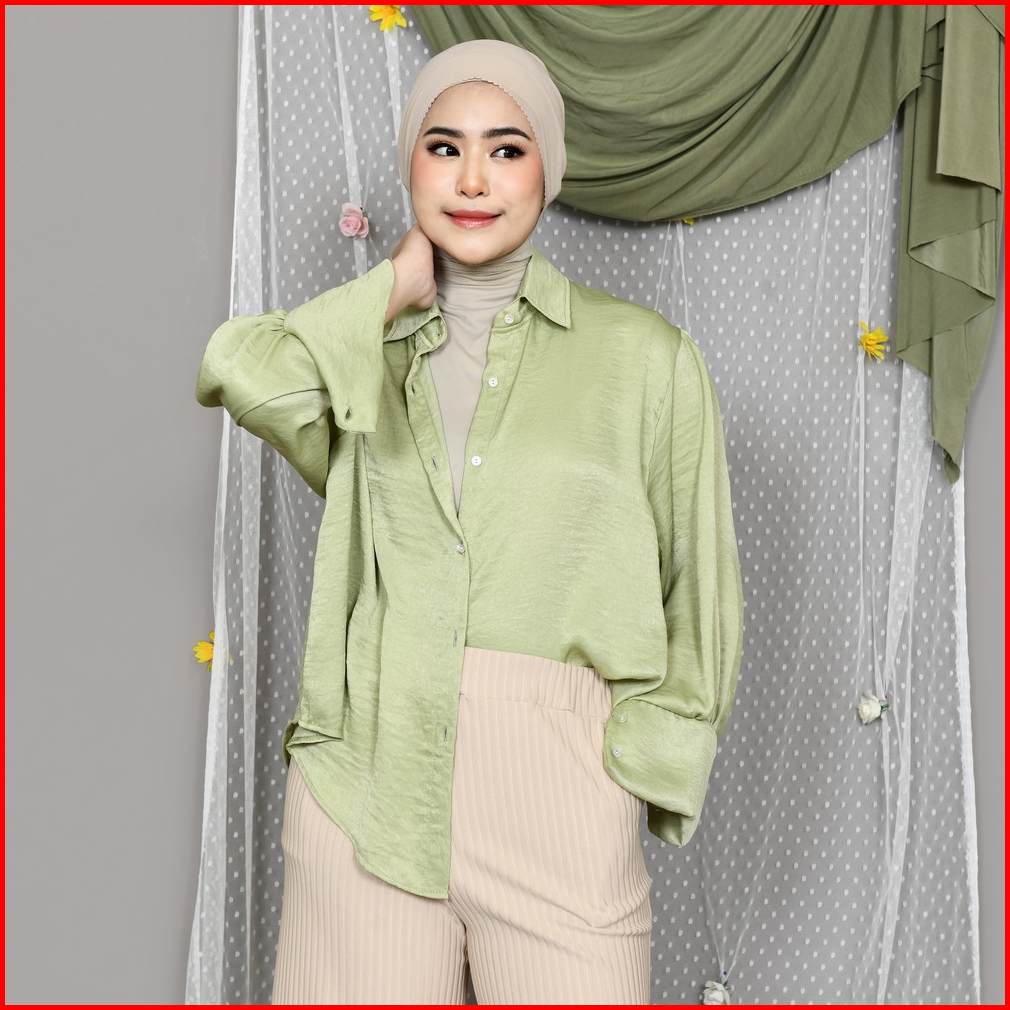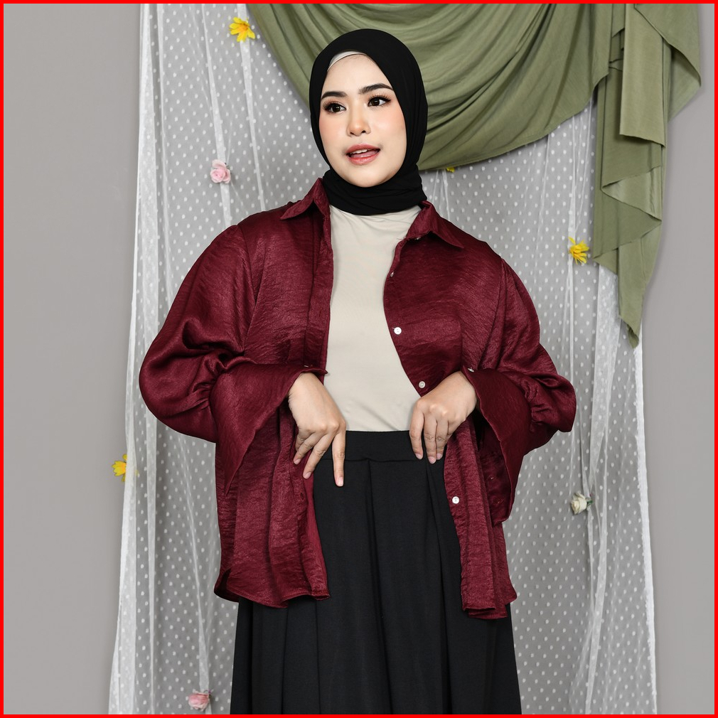 Mybamus Delia Shimmer Kemeja Kemeja Wanita Kemeja Oversize Wanita Kemeja Tangan Panjang