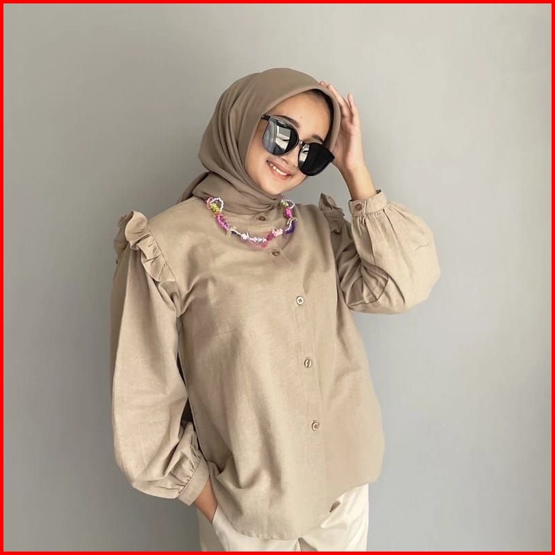 Yurim Blouse Ruffli Kemeja Linen Basic Wanita