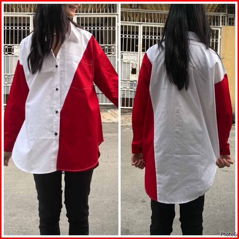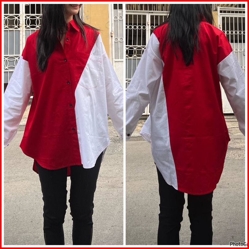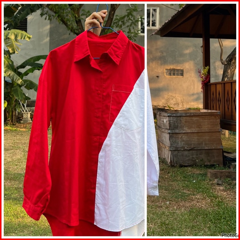 Kemeja Wanita Merah Putih Edisi 17 Agustus - Kemeja Wanita Kemerdekaan Tersedia Ukuran L-4xl Bigsize