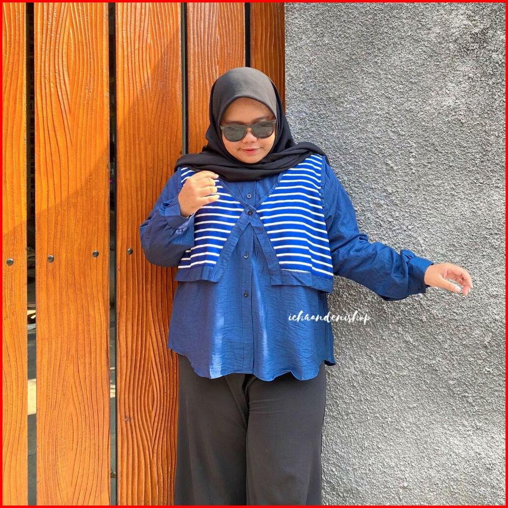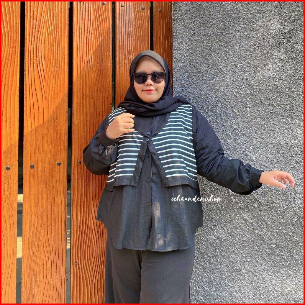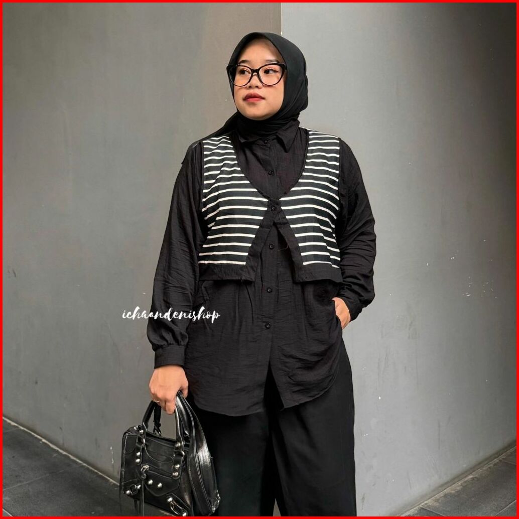 Ich - Mikhaila Kemeja Vest Salur Pololinen Jumbo Kemeja Wanita