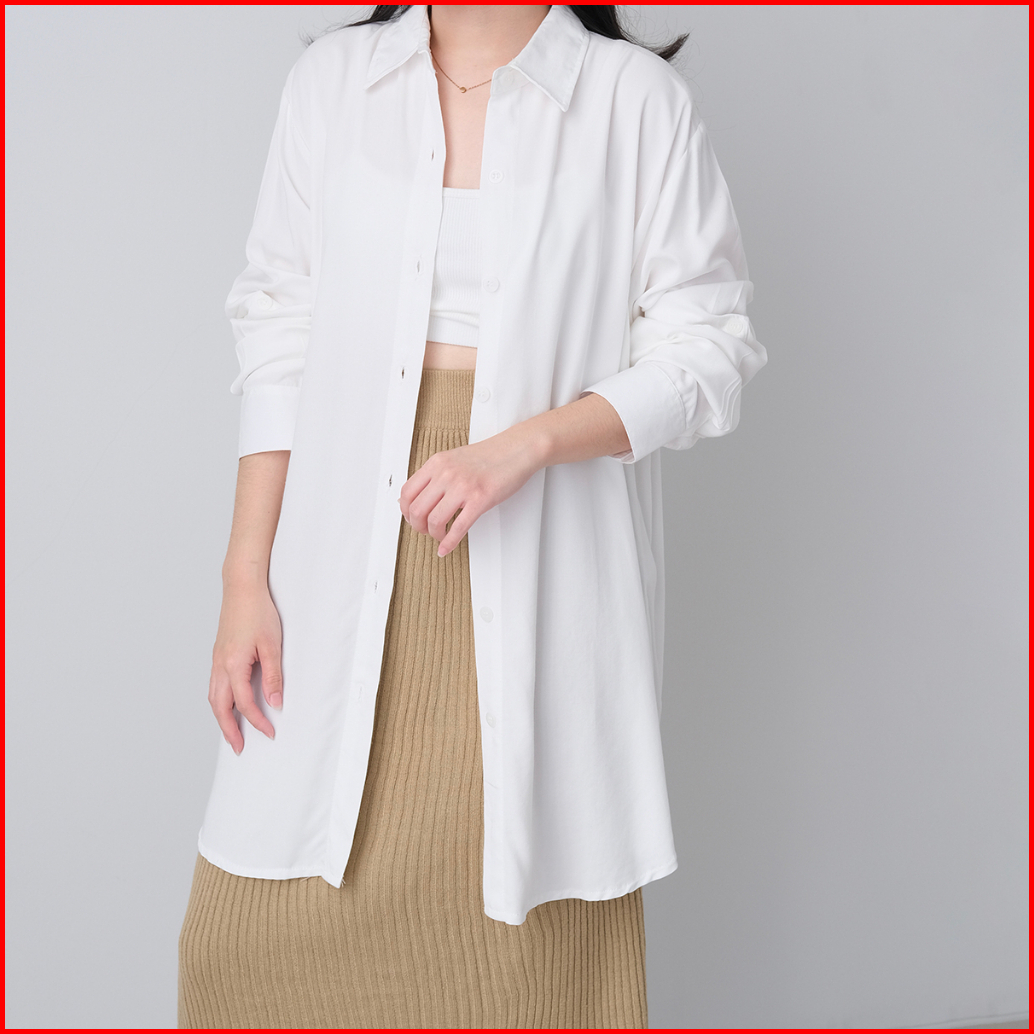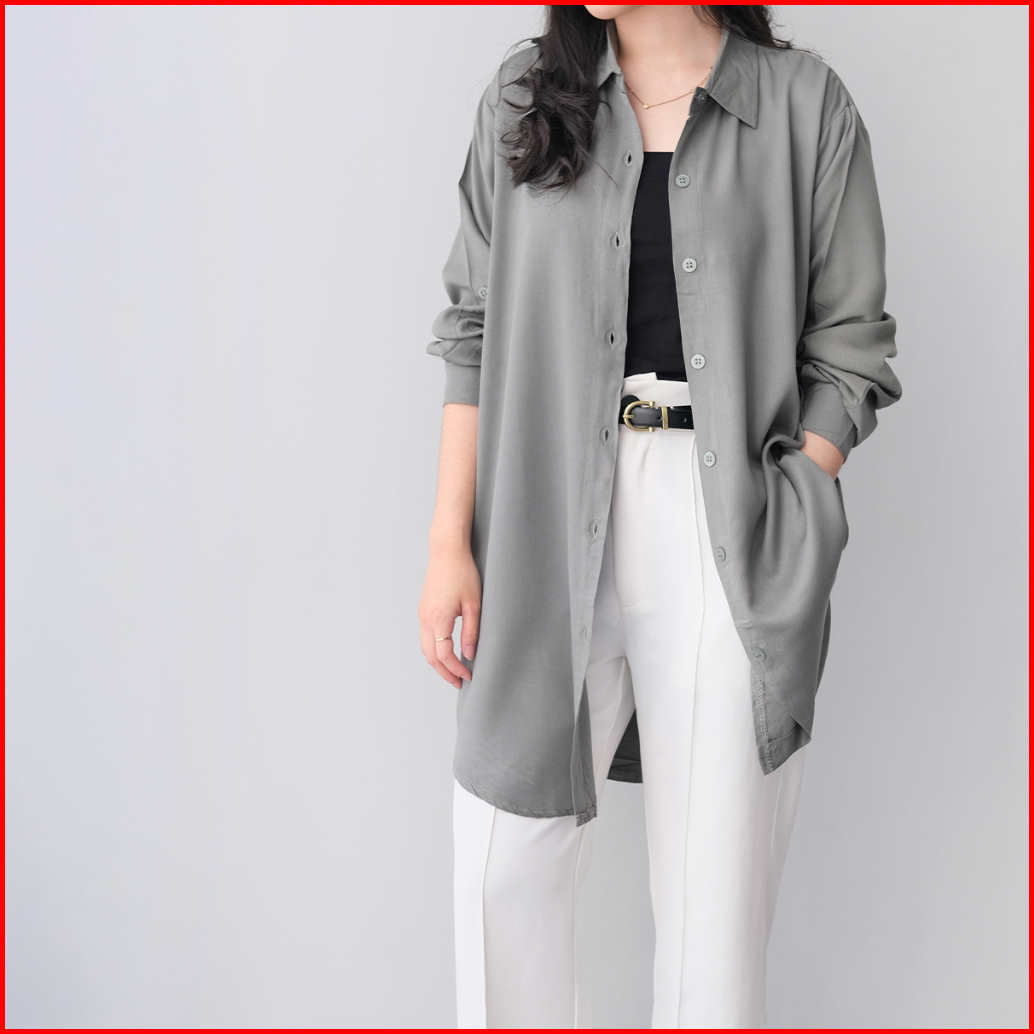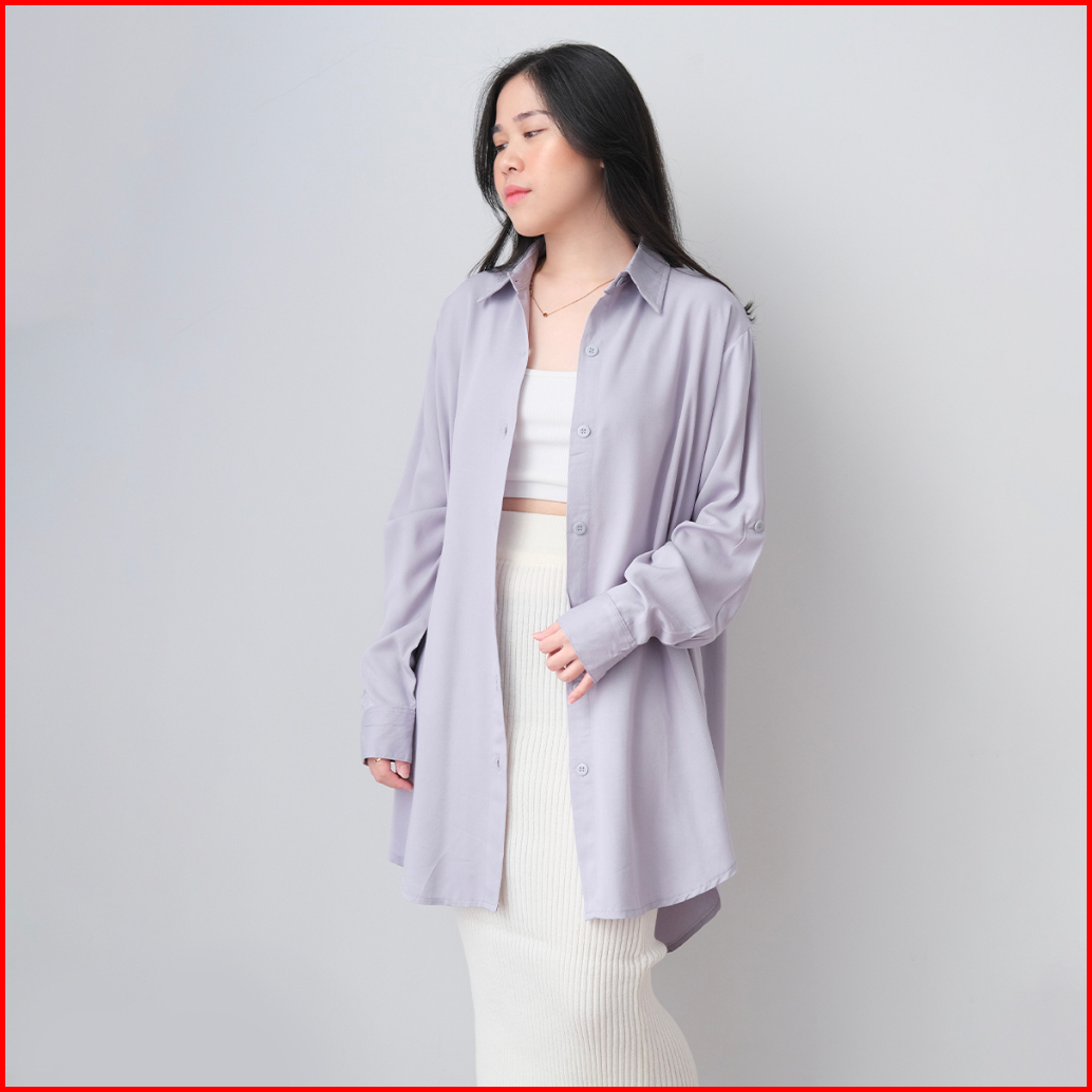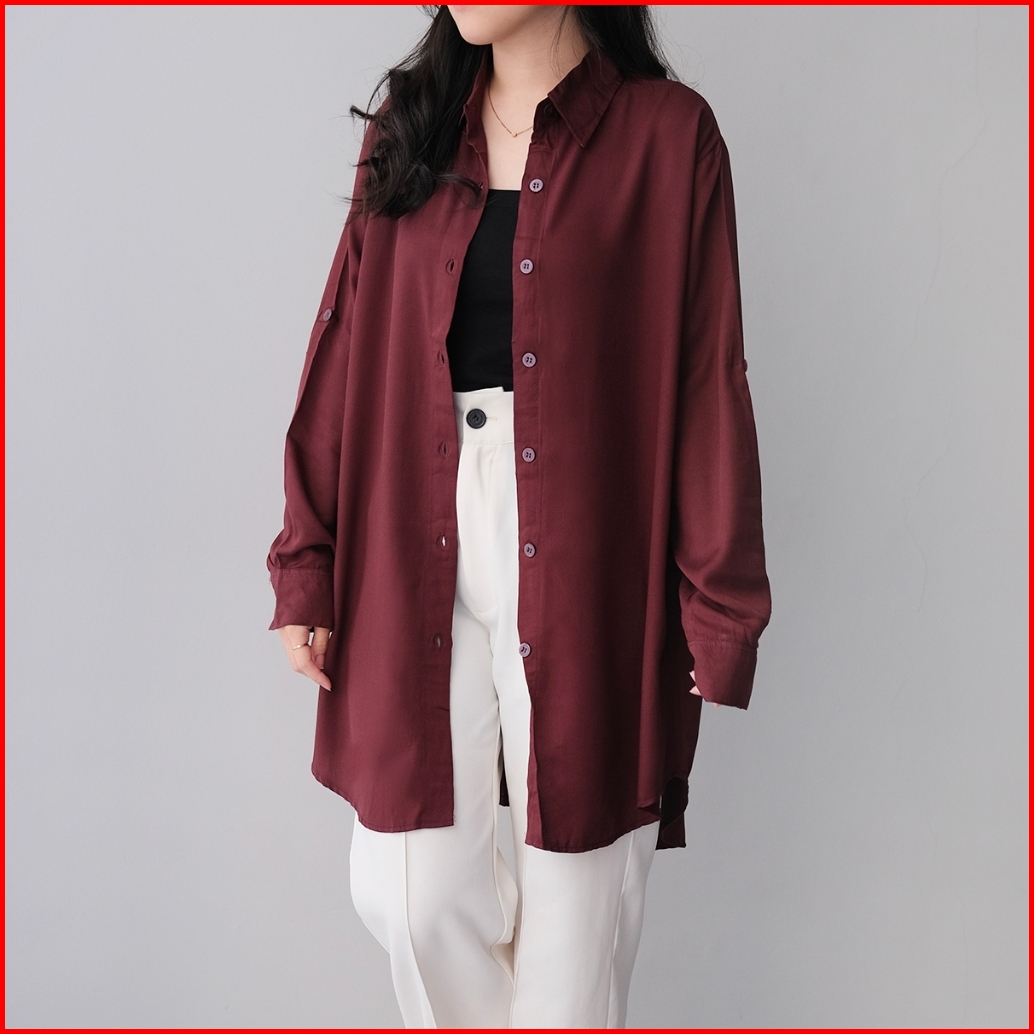 Luna Long Shirt Shu Studio Kemeja Wanita Basic Oversize Bahan Rayon Twill Polos