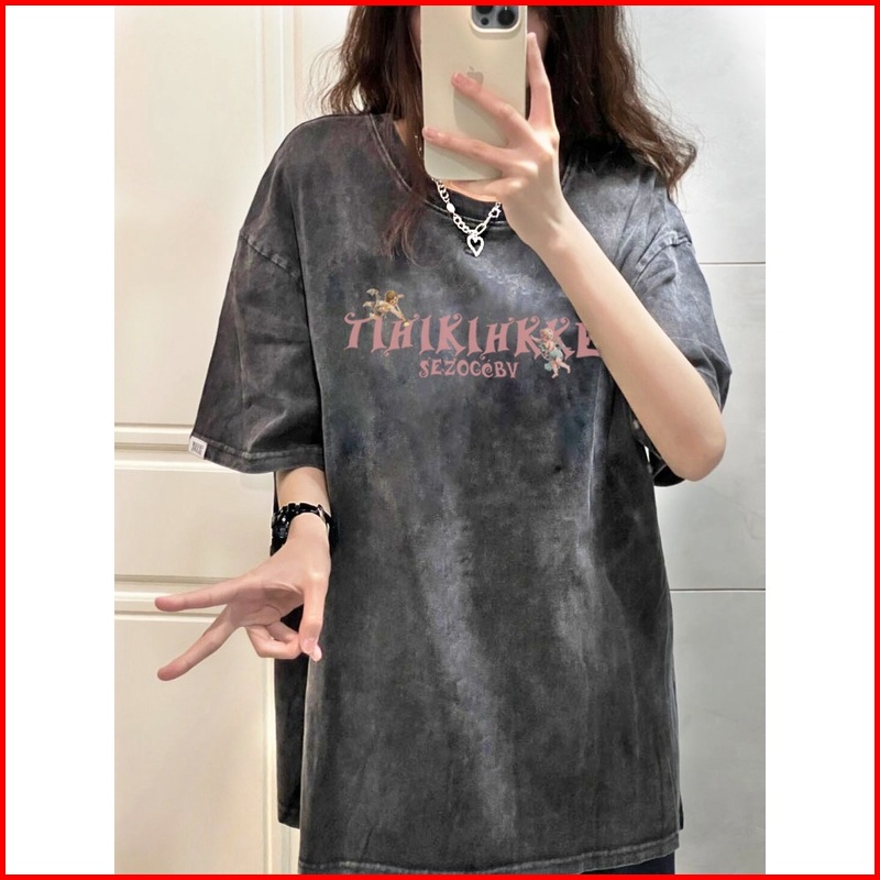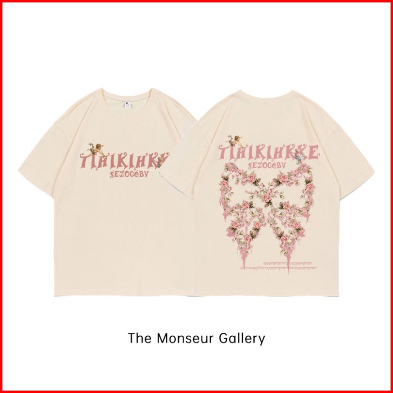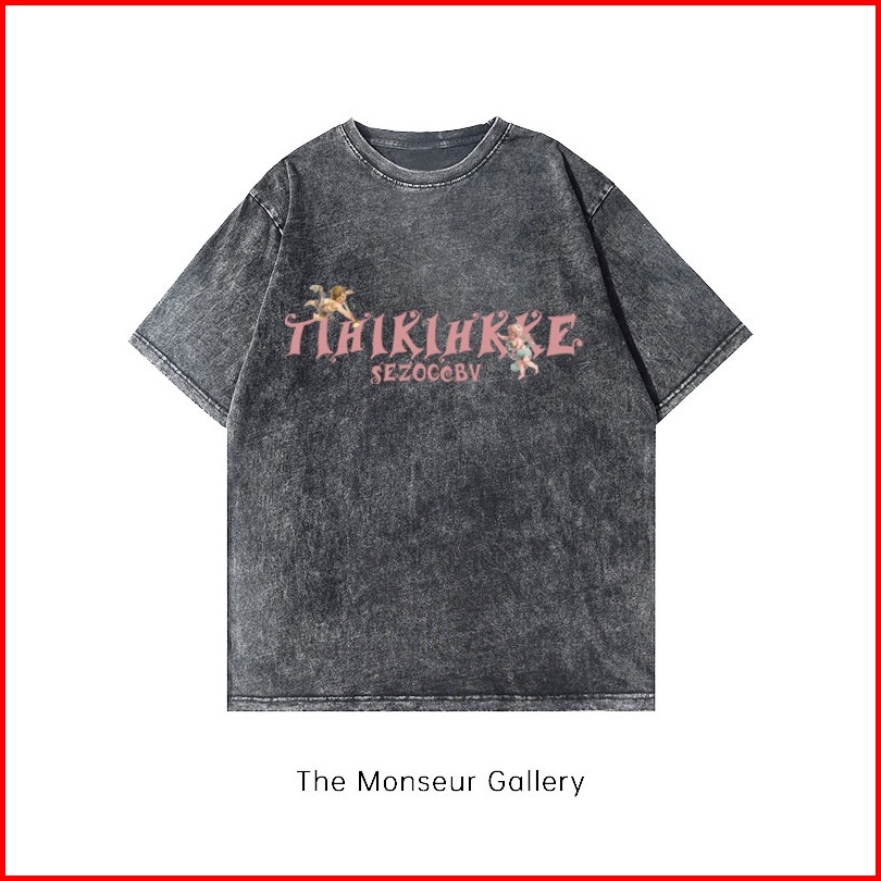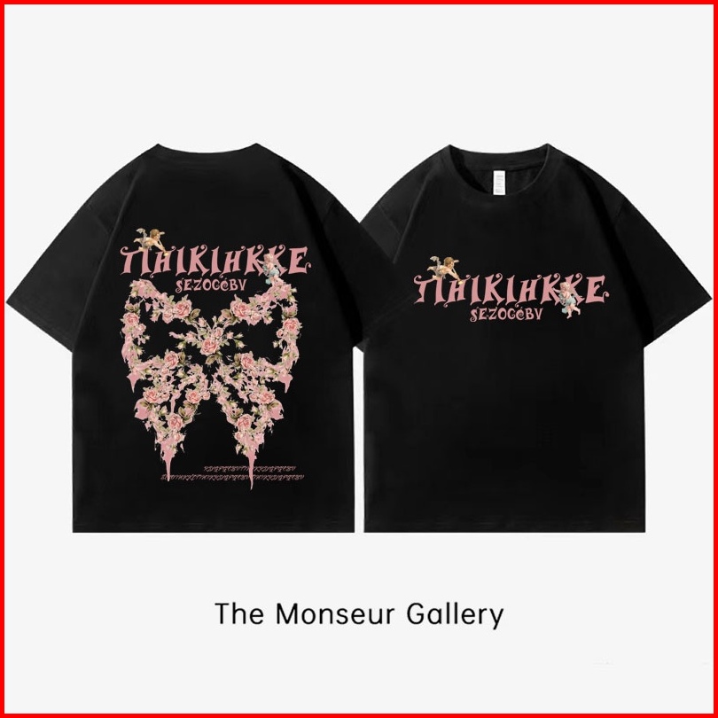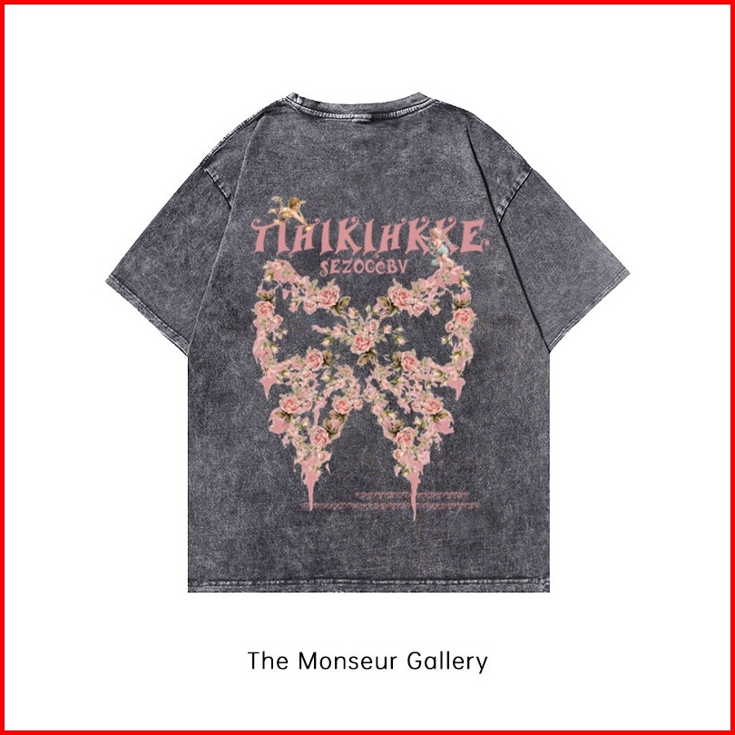 The Monseur Gallery T-shirt Washed Oversize Pink Butterfly Alphabet Kaos Hitam A0175