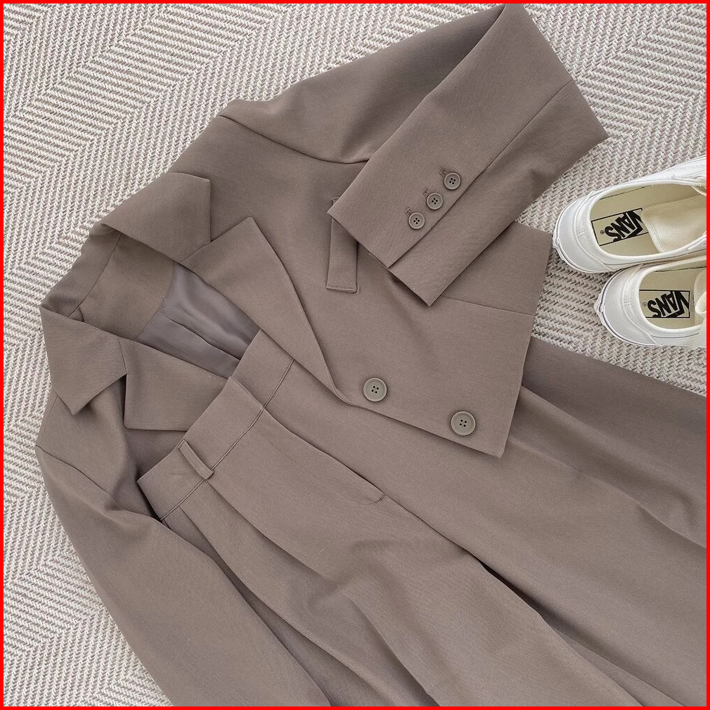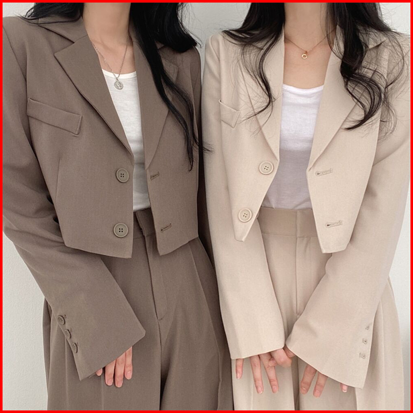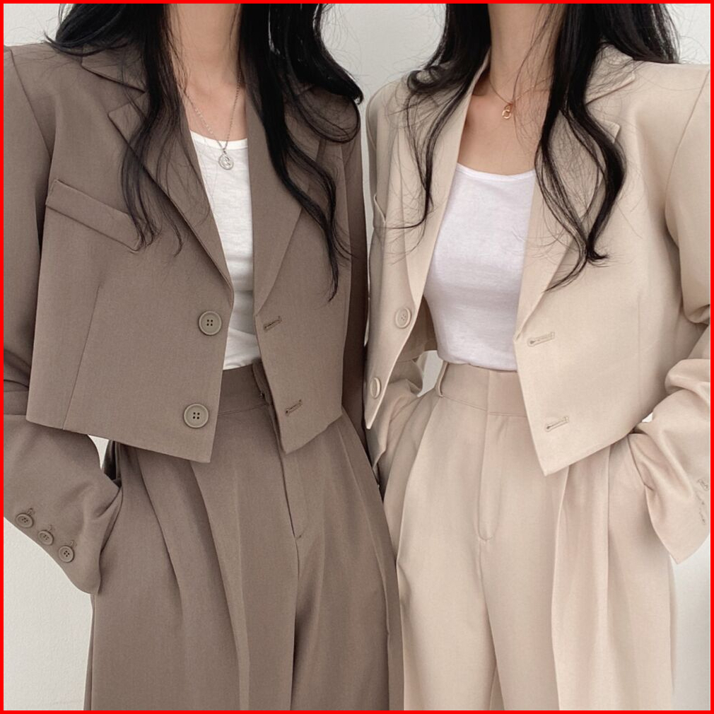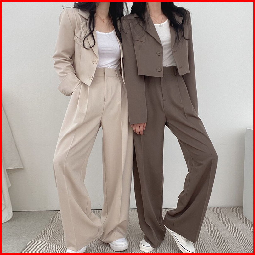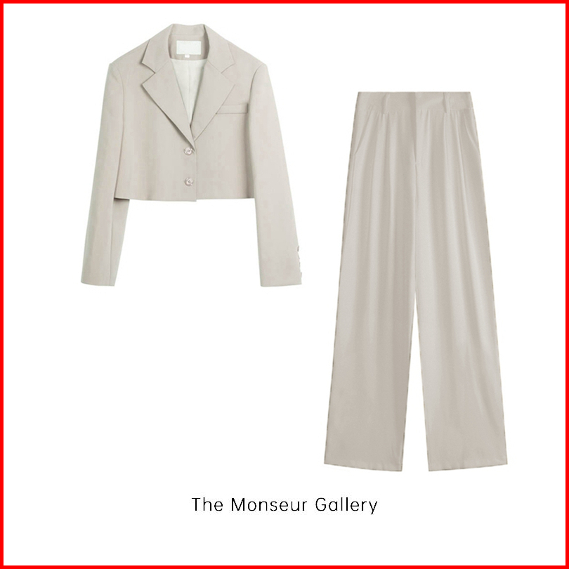 The Monseur Gallery Setelan Wanita Blazer Crop Jaket Lengan Panjang Celana Kulot Highwaist Loose