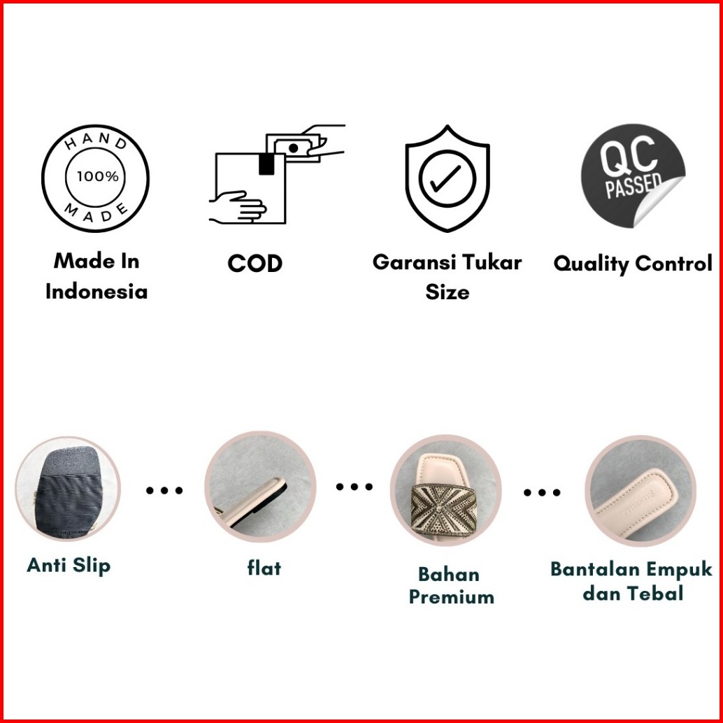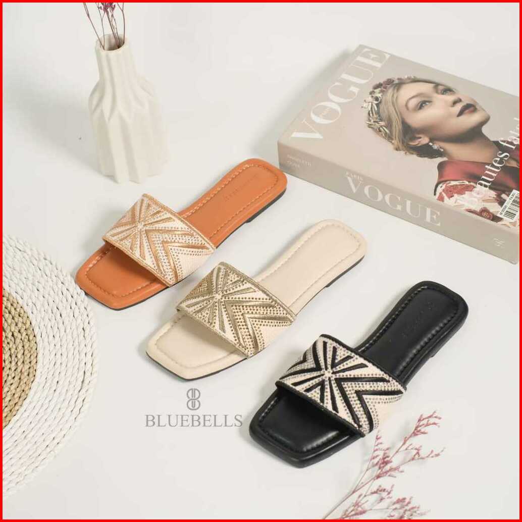 Bluebells Jade Sendal Slop Flat Wanita Kekinian Elegan Tersedia Size 36-41