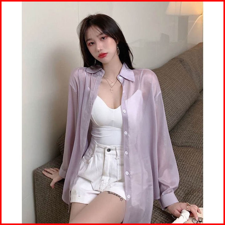 Ami Collection - Kemeja Transparan Kemeja Korean Style Kemeja Oversize Lengan Panjang