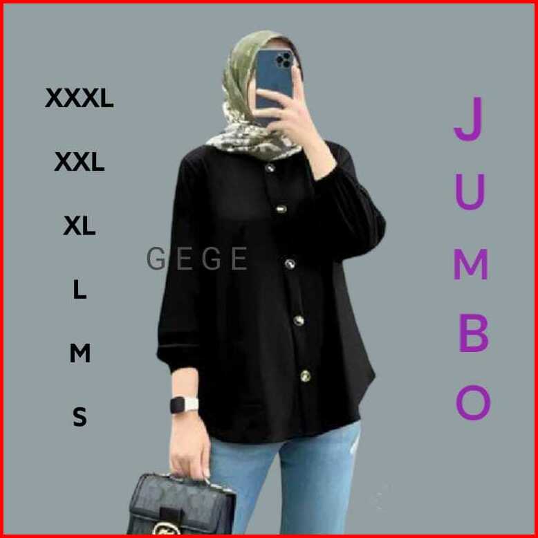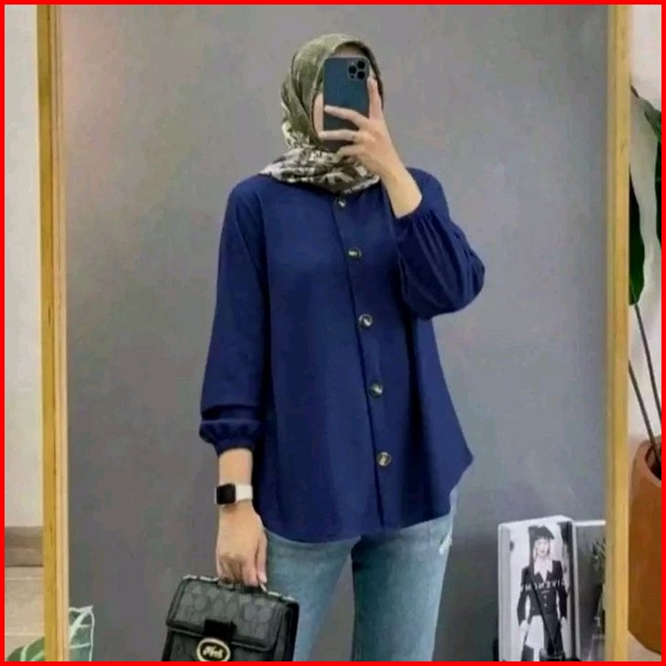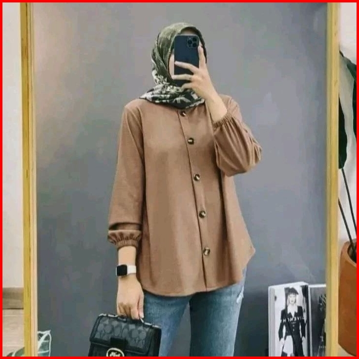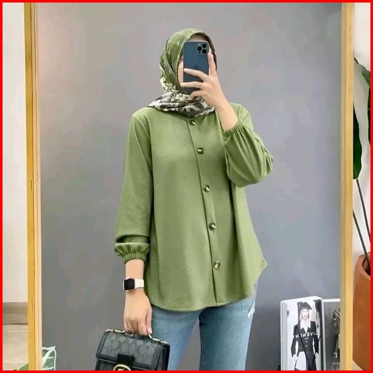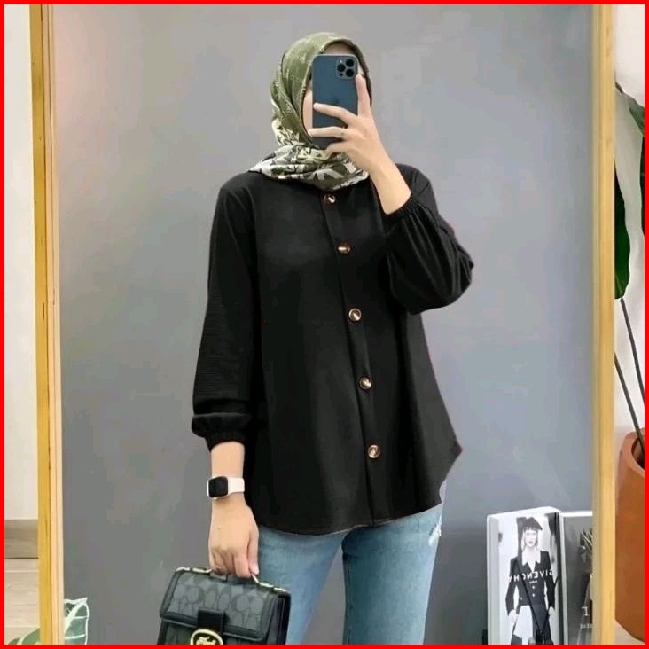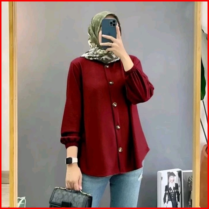 Atasan Wanita Jumbo Lengan Karet Kemeja Wanita Kekinian Full Kancing Crinkle Airflow