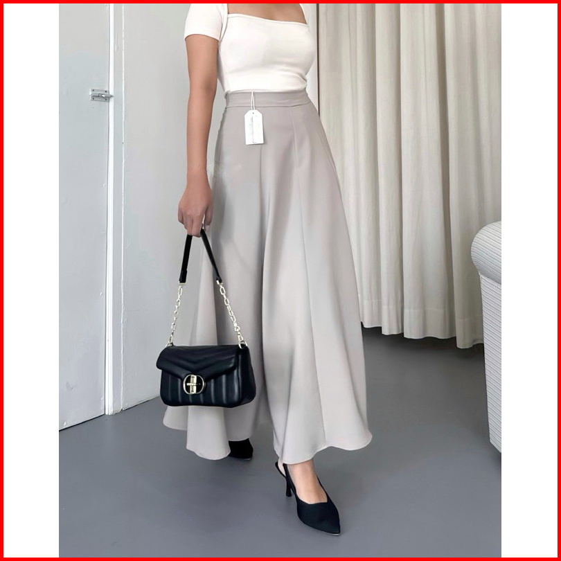 Audy Skirt - Korean Loose Maxi Skirt Rok Wanita Anti Kusut Polyester - Rok Flare Wanita - Rok Basic Polos - Maxi Skirt R