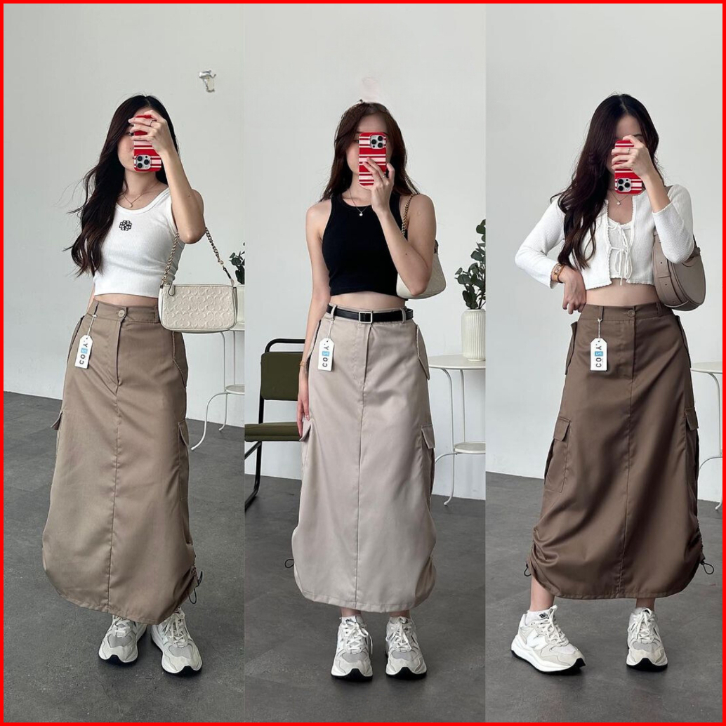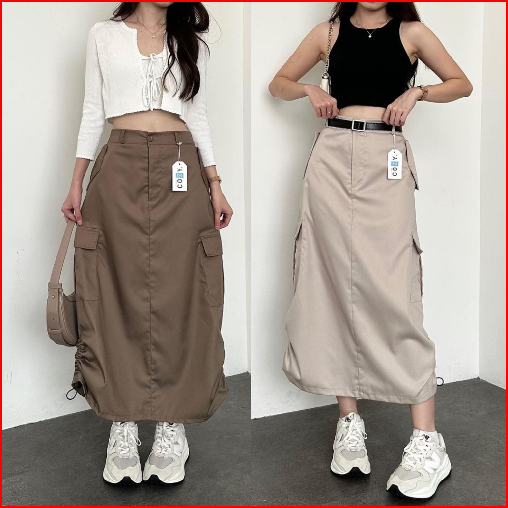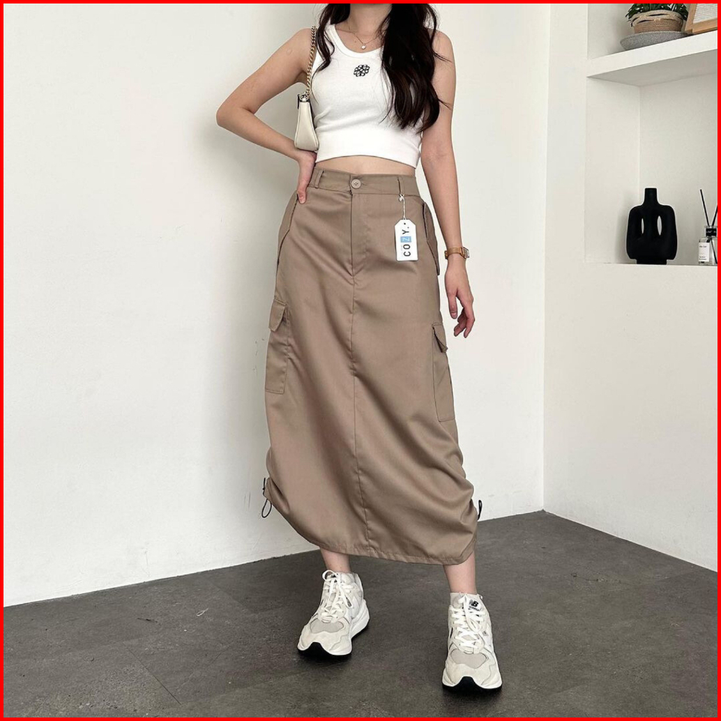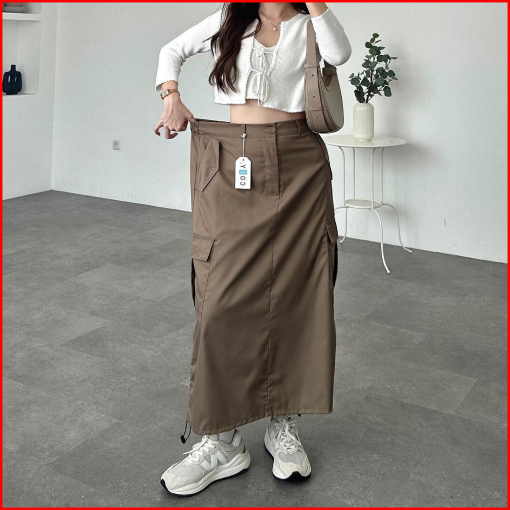Rok Kargo Serut Livina Highwaist Skirt Cargo Chinos Drill
