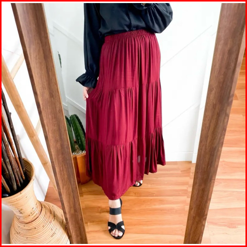 Rok Skirt Susun Rok Matt Rayon Twill Rok Bawahan Wanita