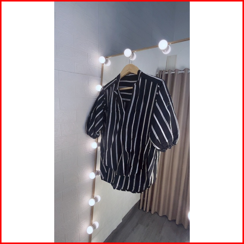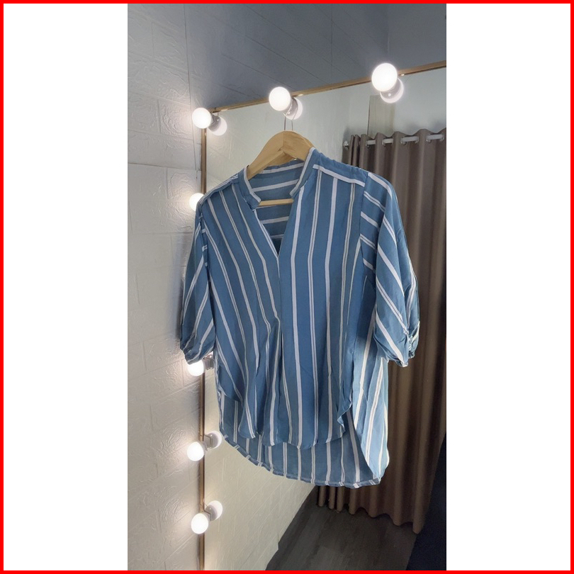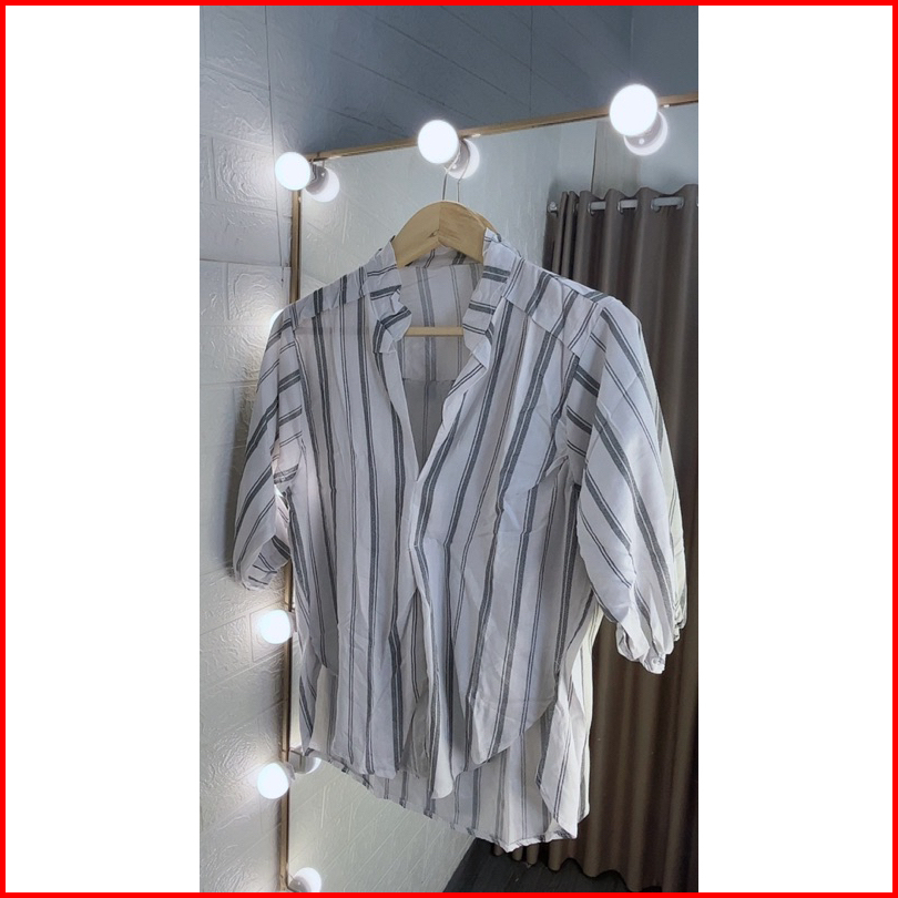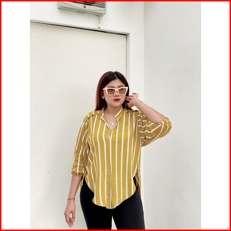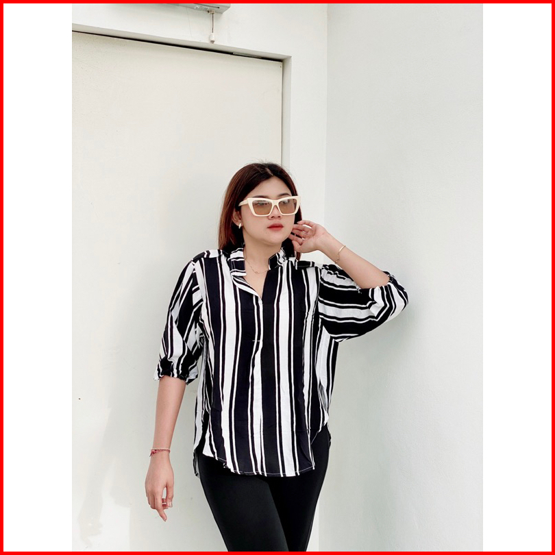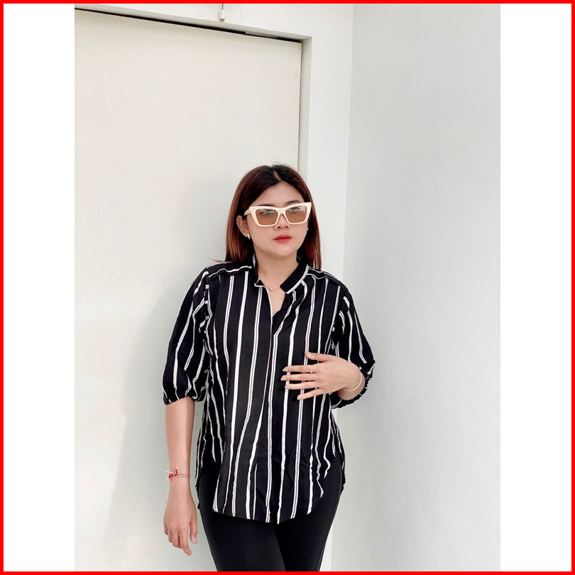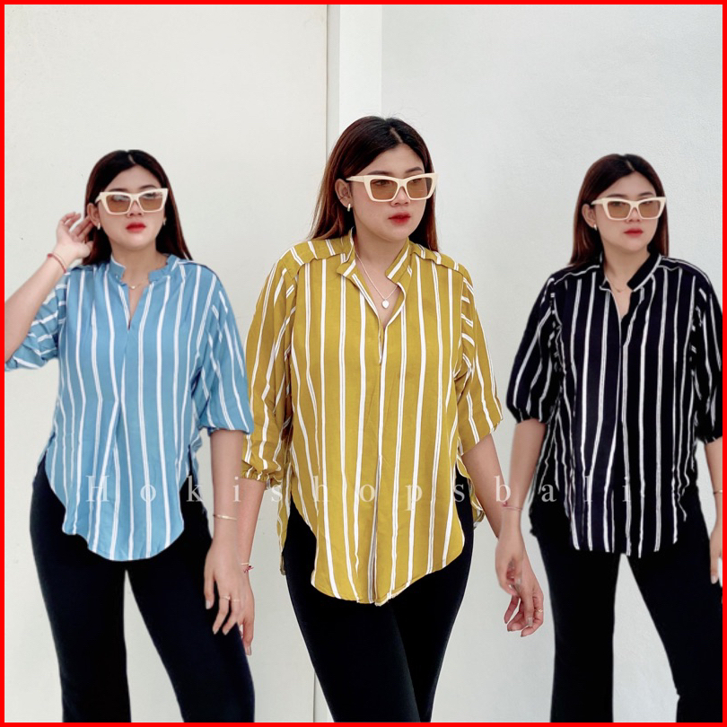 Hoki Kemeja Fuxi Salur Rayon Bali Onesize Lengan 7 8 Blouse Wanita