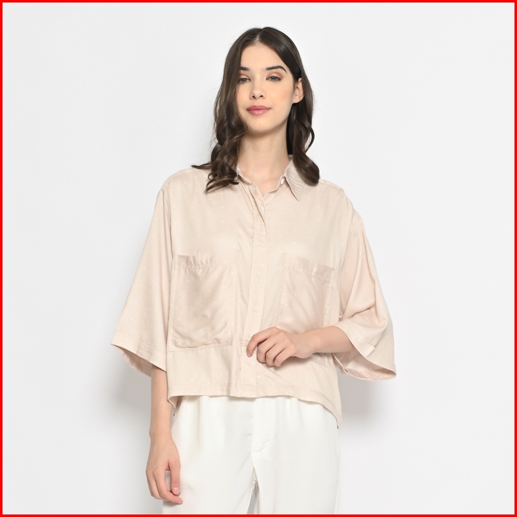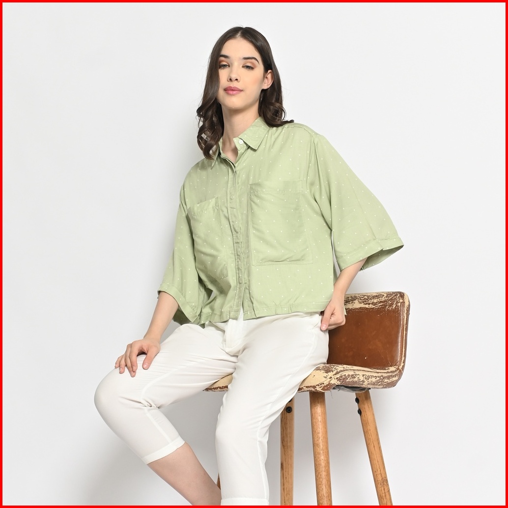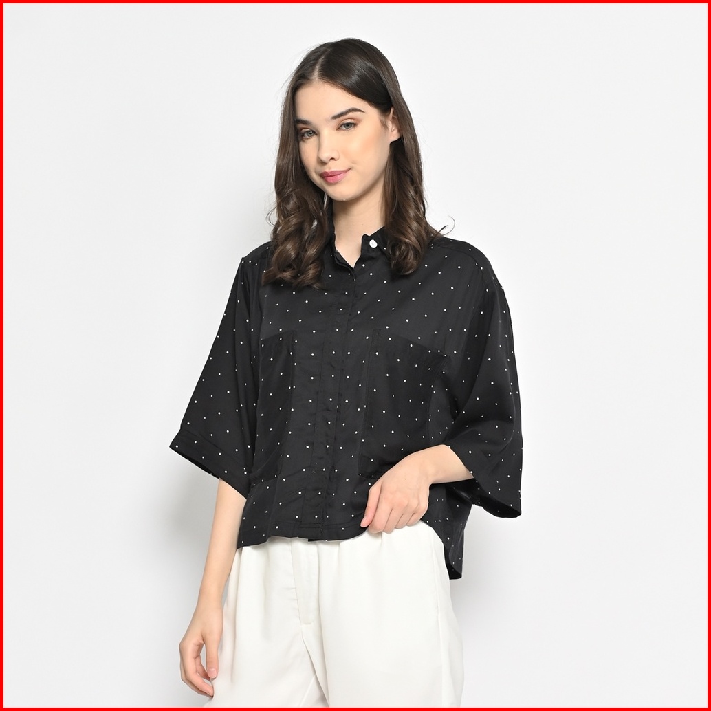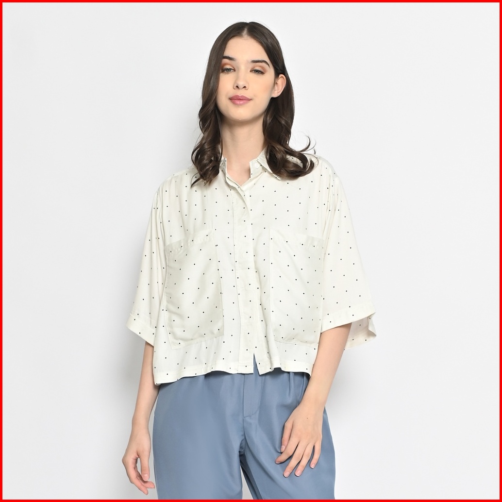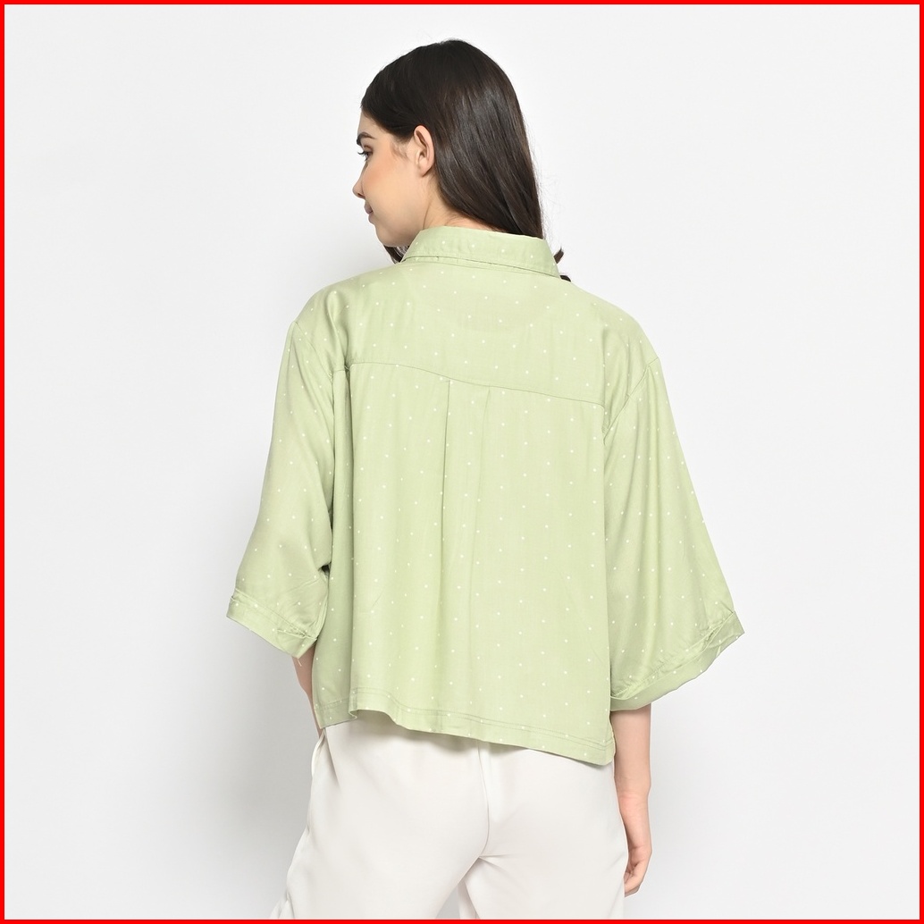 Queentin Kemeja Blouse Crop Wanita 0372 Katun Rayon Motif Polkadot Premium Lengan Panjang 3 4
