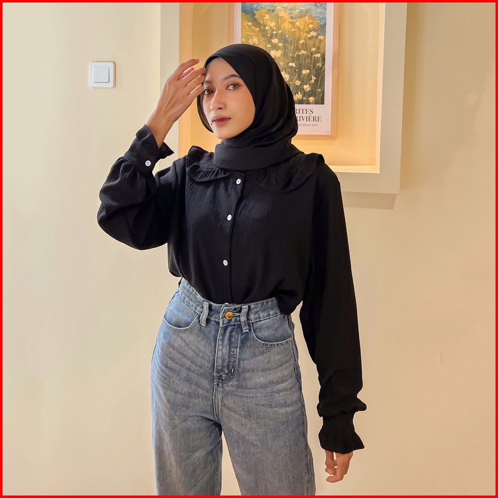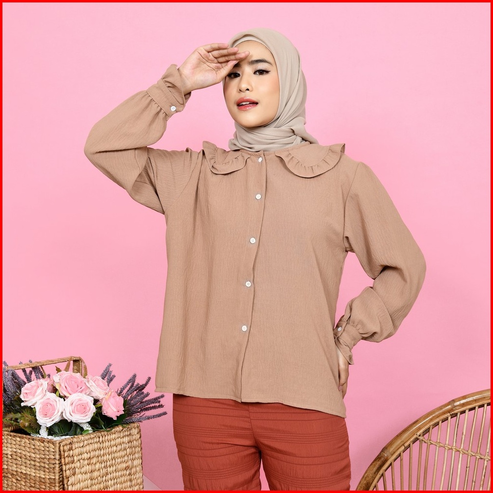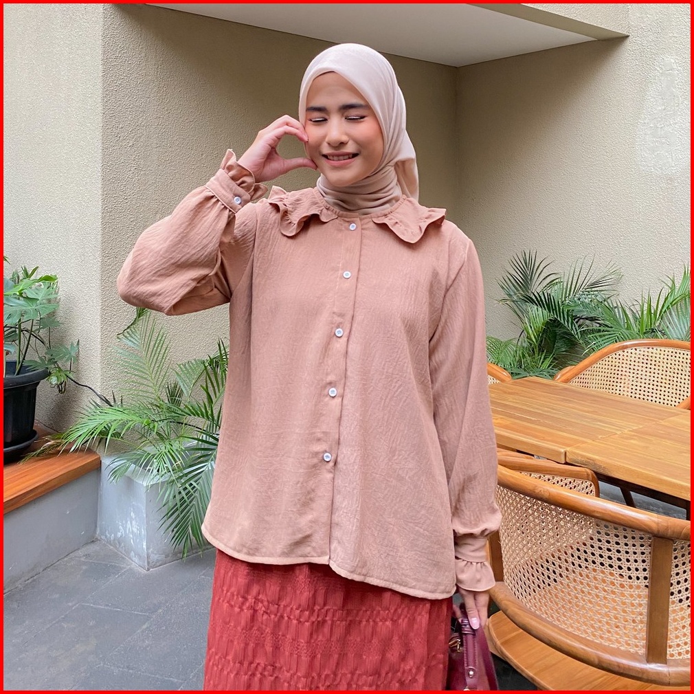 Mybamus X Rafikarahma - Nuna Kemeja Cringkle - Atasan Wanita Kringkel Blouse Tangan Panjang Kemeja Kekinian
