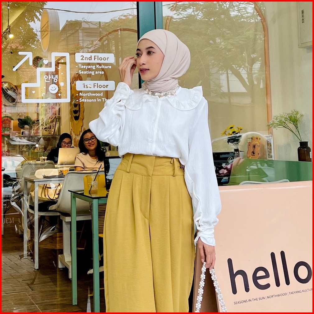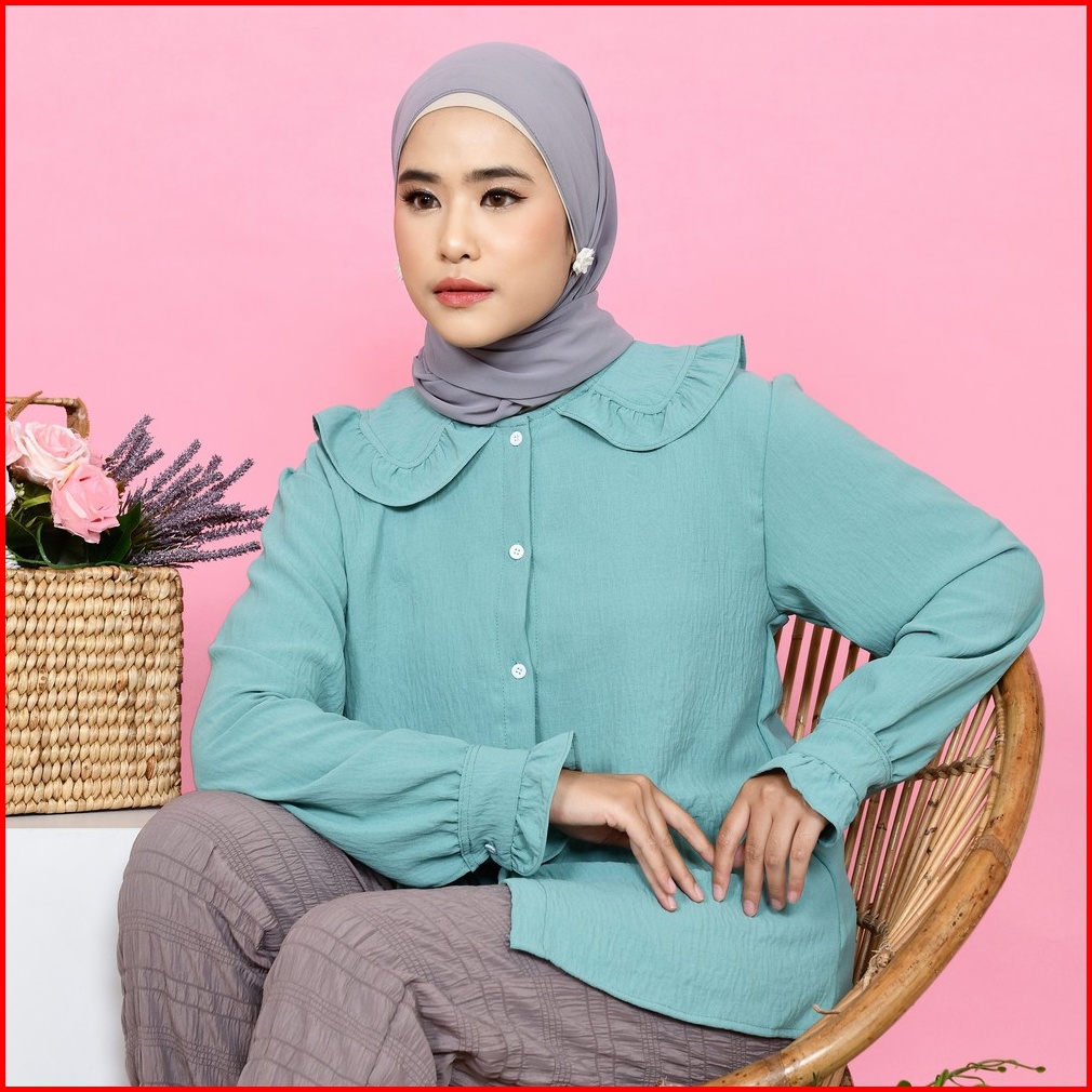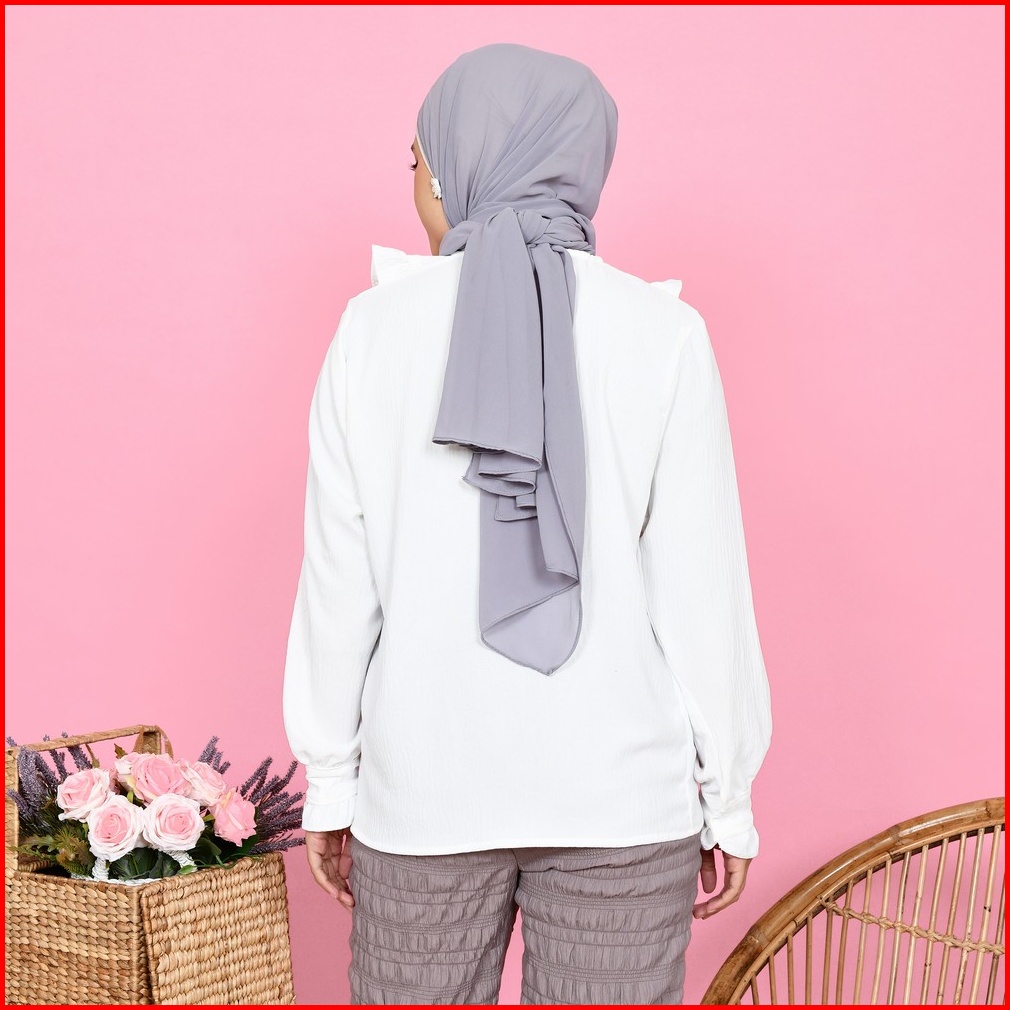 Mybamus X Rafikarahma - Nuna Kemeja Cringkle - Atasan Wanita Kringkel Blouse Tangan Panjang Kemeja Kekinian