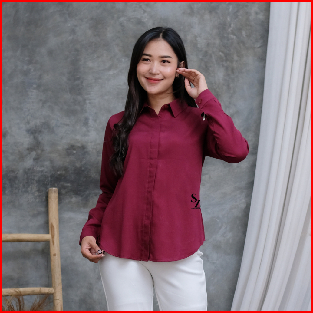 Willy Shirt - Kemeja Wanita Basic Rayon Twill Oversize - Kemeja Polos Rayon Twill Jumbo