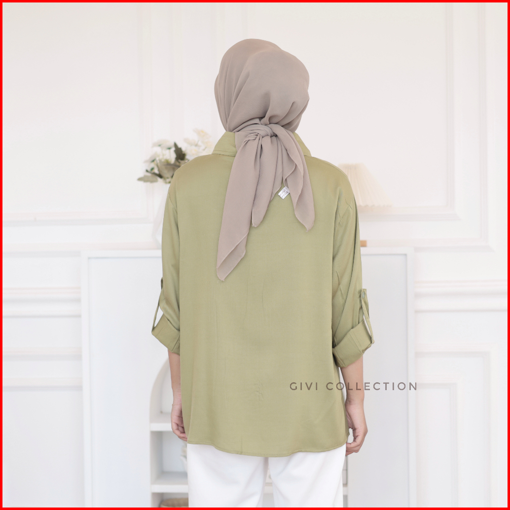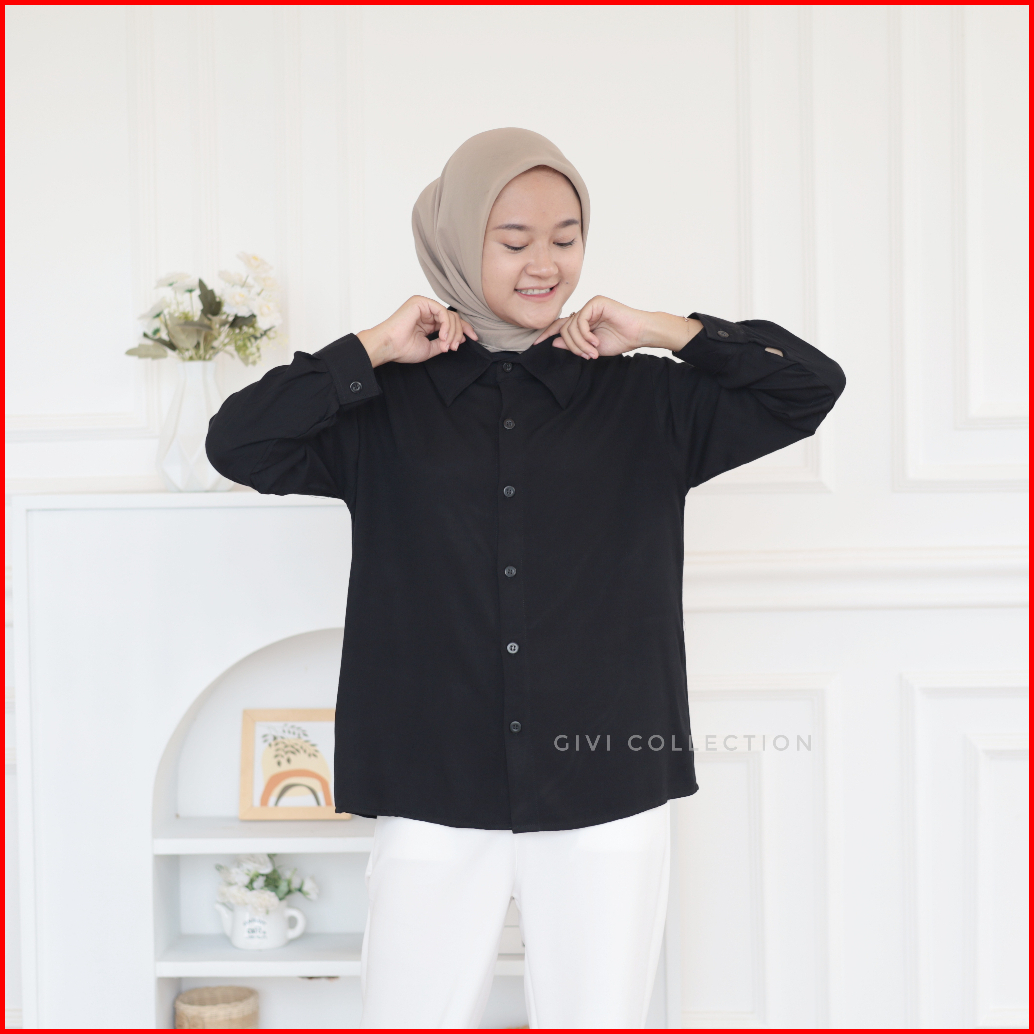 Megie Shirt Kemeja Polos Wanita Rayon Twill Tebal Kemeja Casual Tangan Skoder
