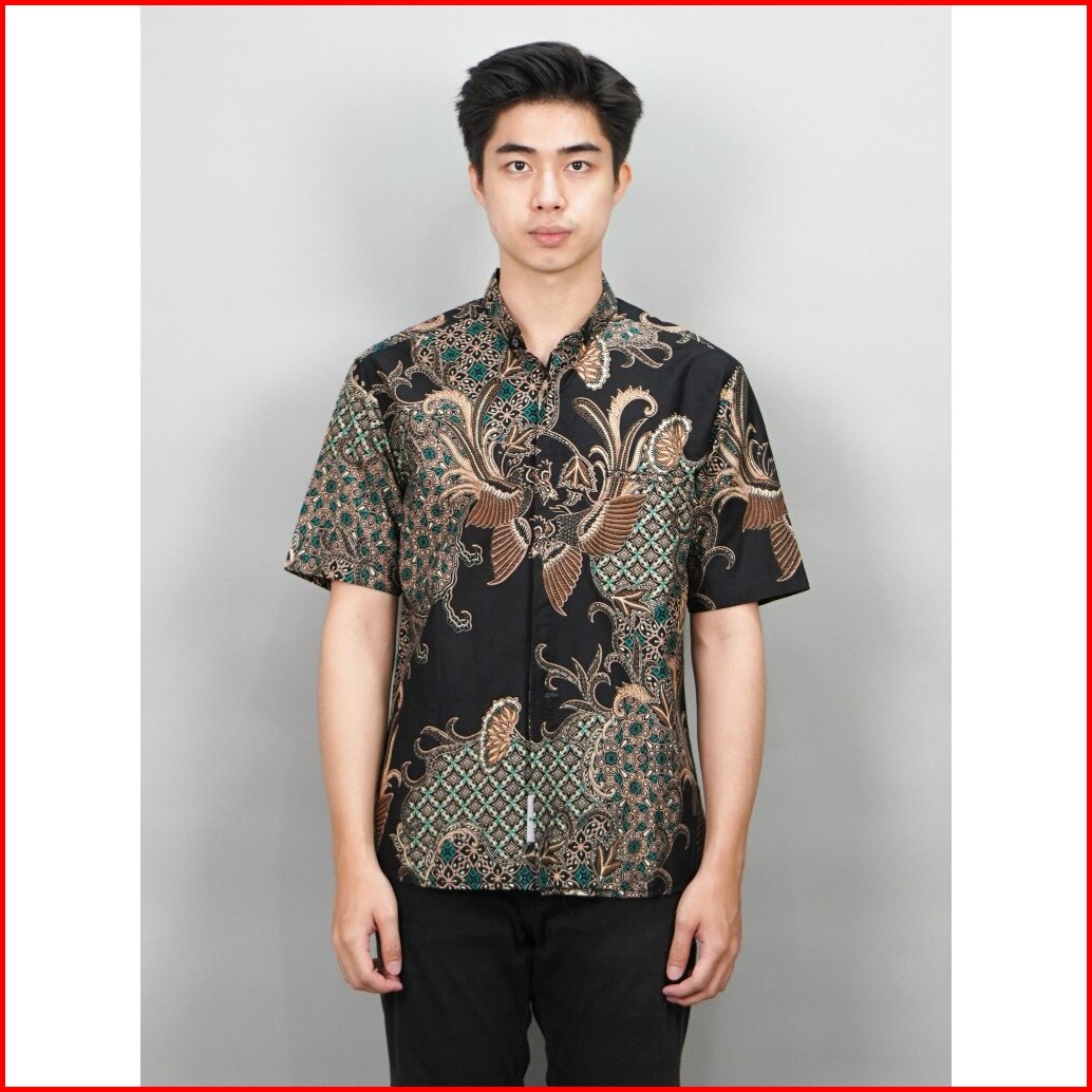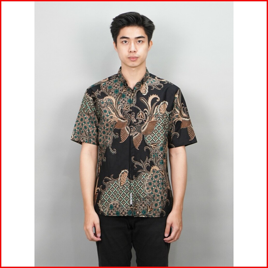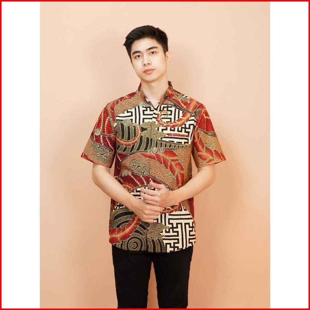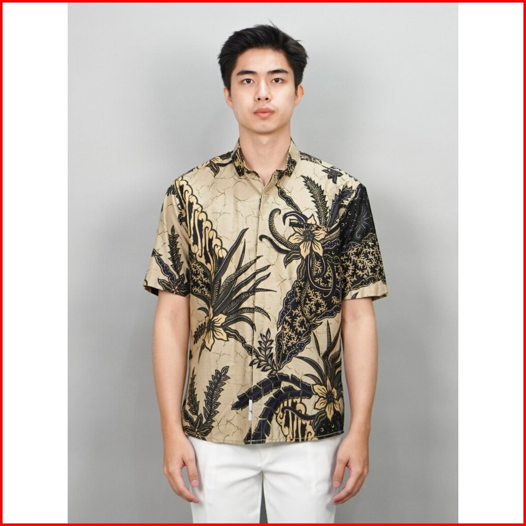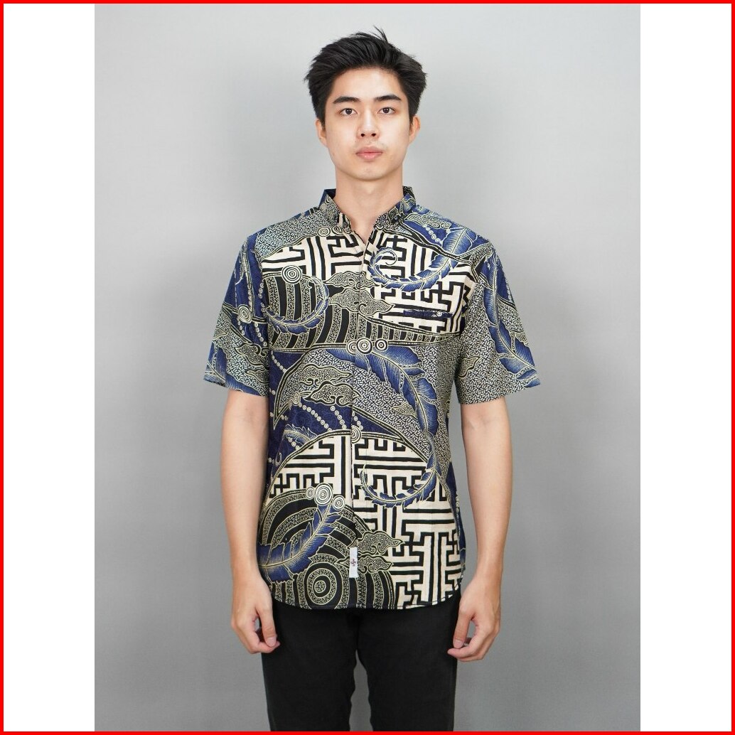 Swipe Up Kemeja Batik Pria Modern Slimfit Lengan Pendek Gabungan