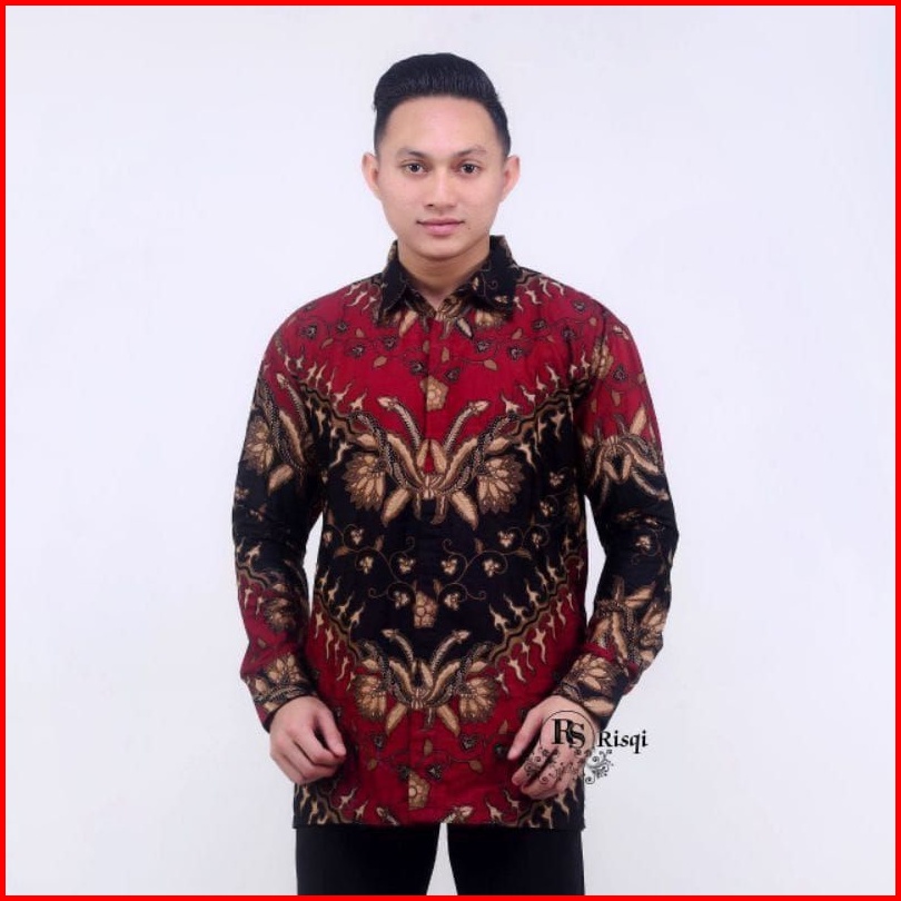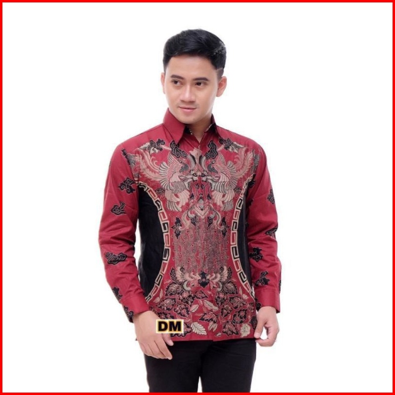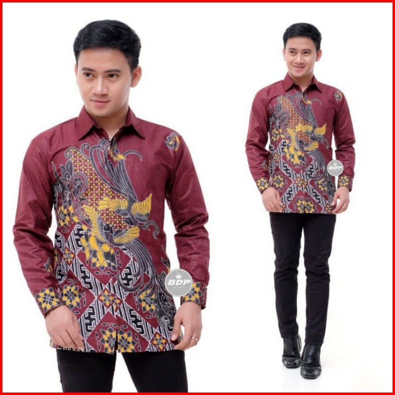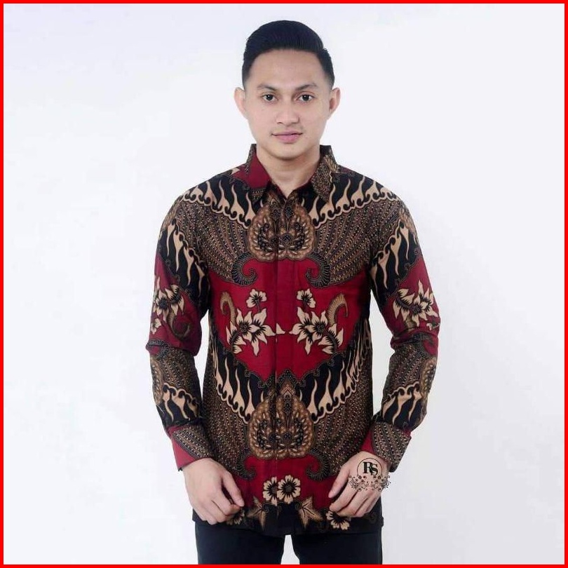 Kemeja Batik Pria Warna Merah Maroon Batik Pria Katun Halus S M L Xl Xxl 3xl