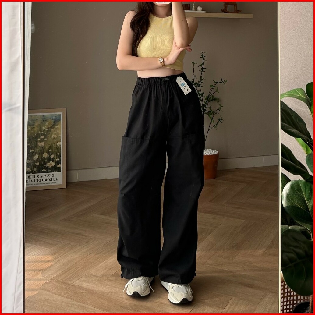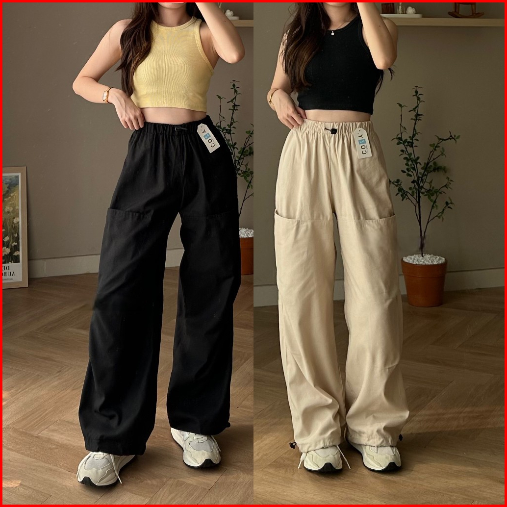 Jane Baggy Pants - Celana Kulot Jogger Cargo Serut Highwaist Chinos - Celana Kargo Wanita