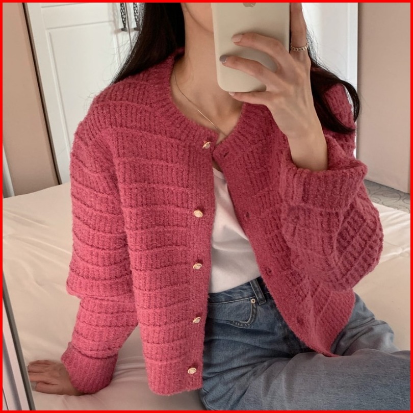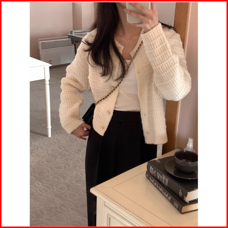 The Monseur Gallery Cardigan Lengan Panjang Retro Gaya Korea Kardigan Rajutan Lengan Panjang Atasan Crop Berkerah V
