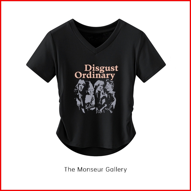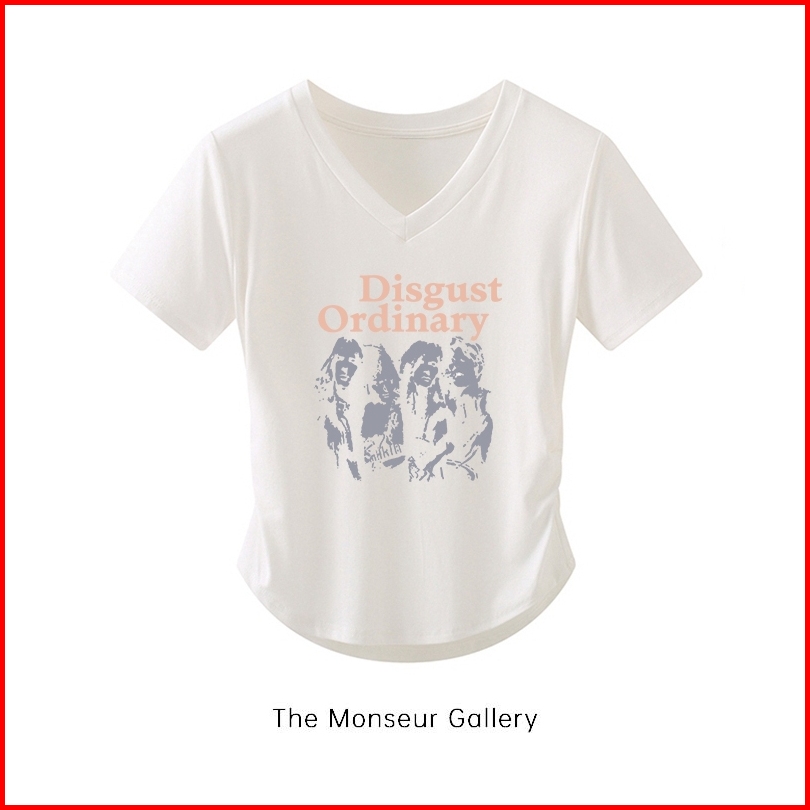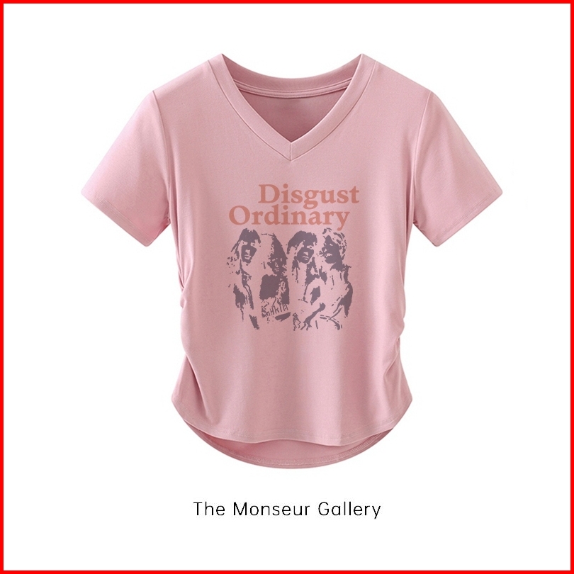 The Monseur Gallery Crop Top Slimfit V Neck Retro Disgust Ordinary T-shirt Korean Style Kaos Drawstring Wanita